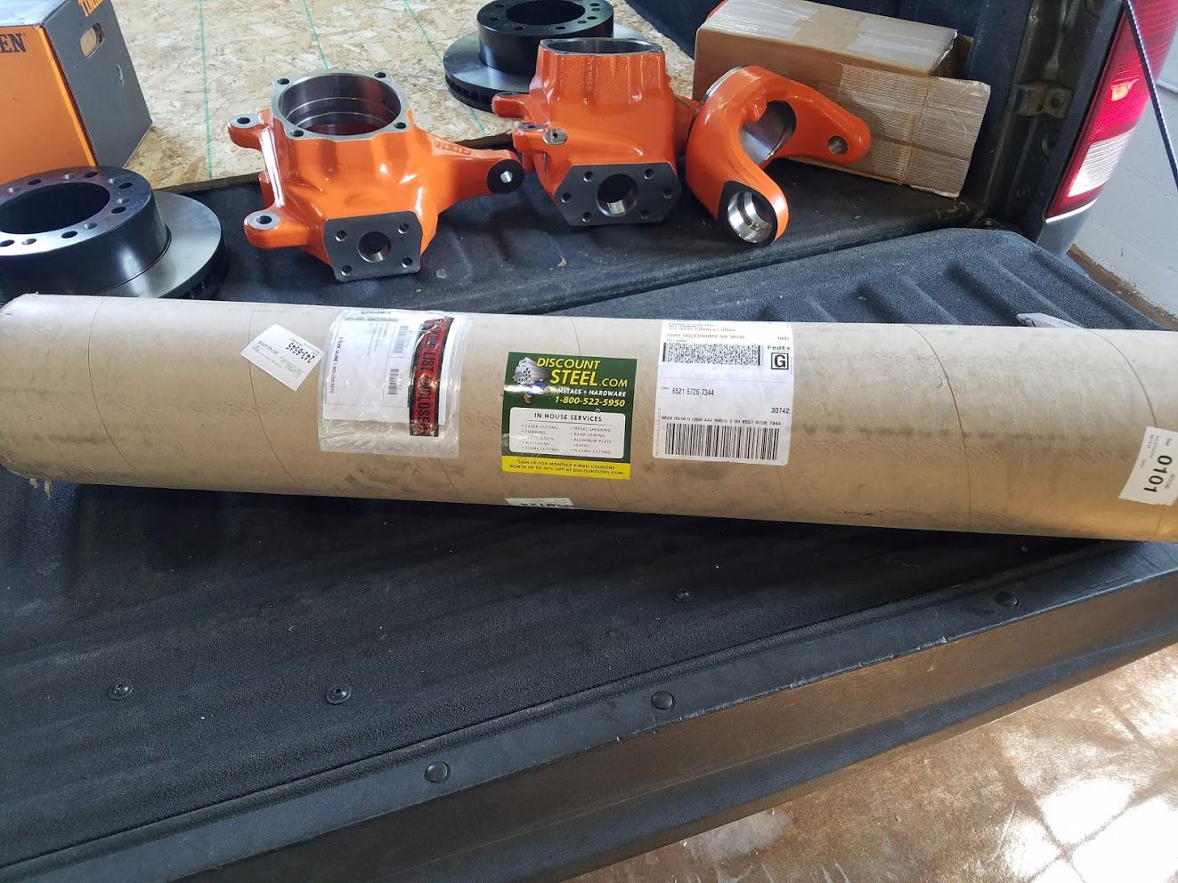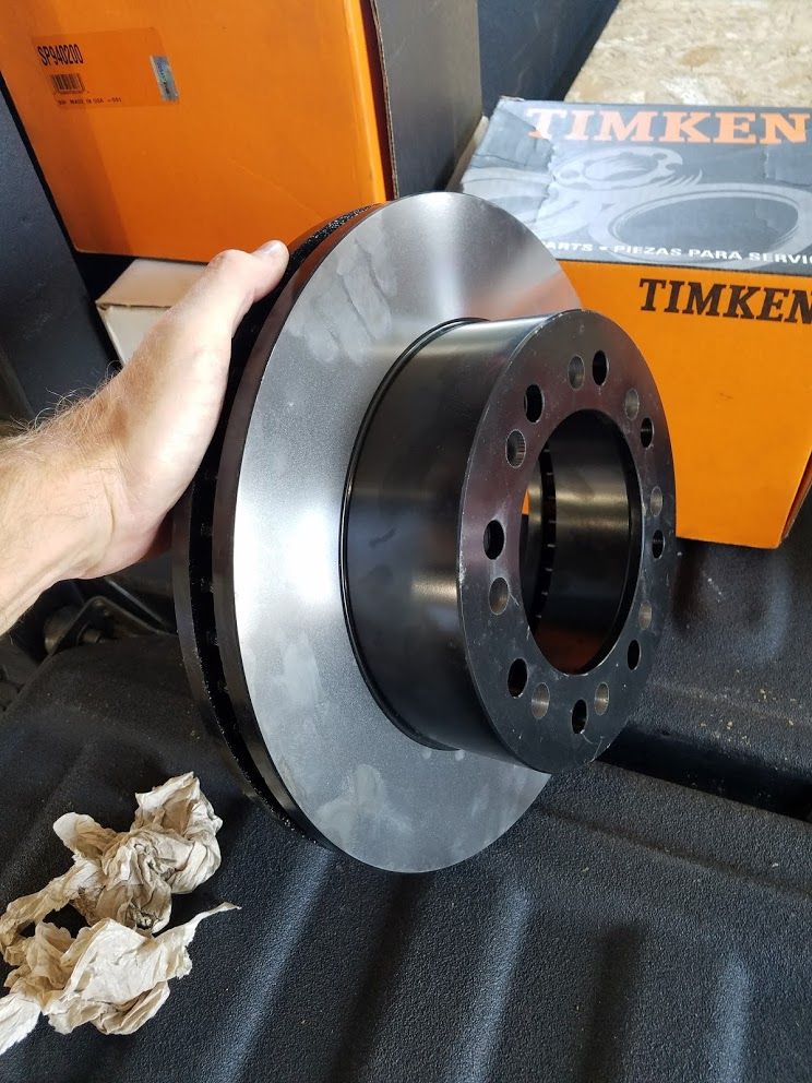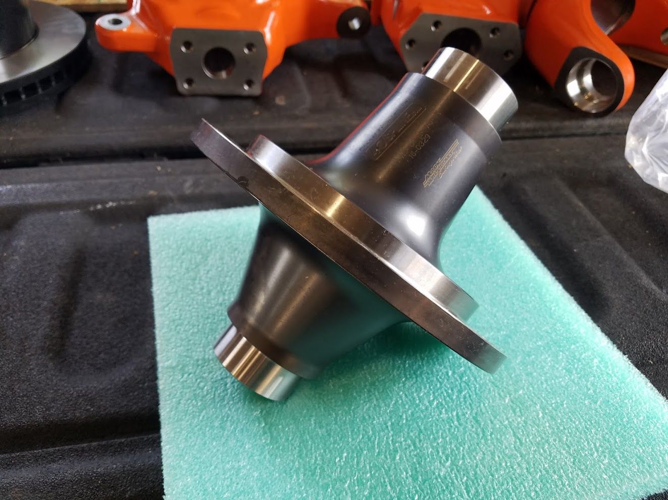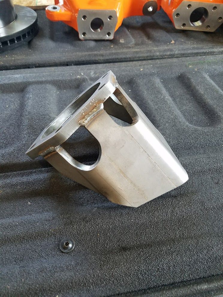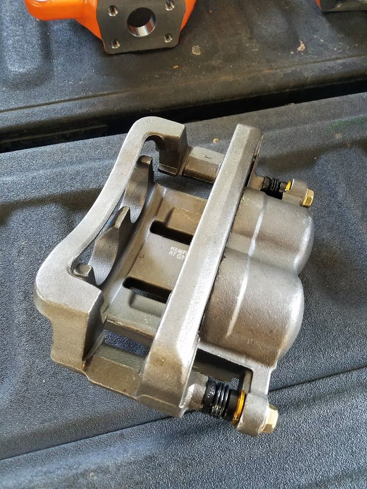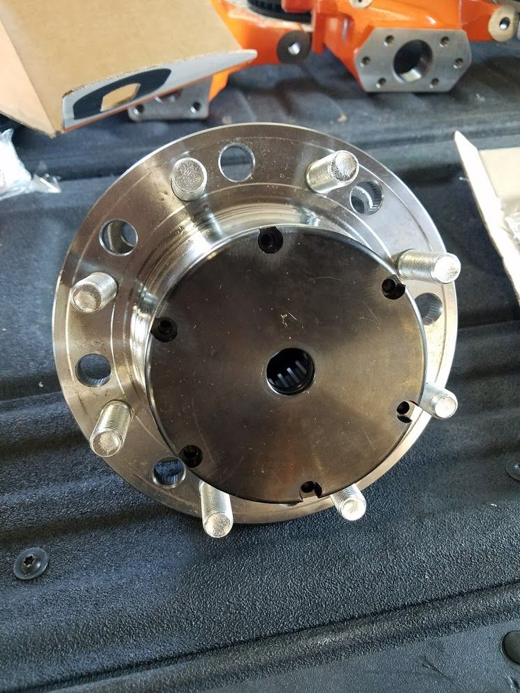 Got the UBs and rotors redrilled by Hudlow Axle. He did a great job and went ahead and pressed in the studs for me as well. He also cut away some material in the back that will make future stud R&R much easier. Calipers are huge.