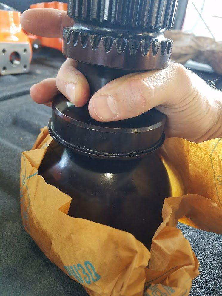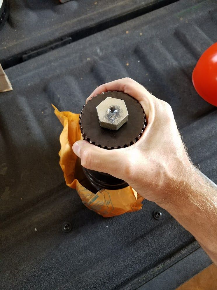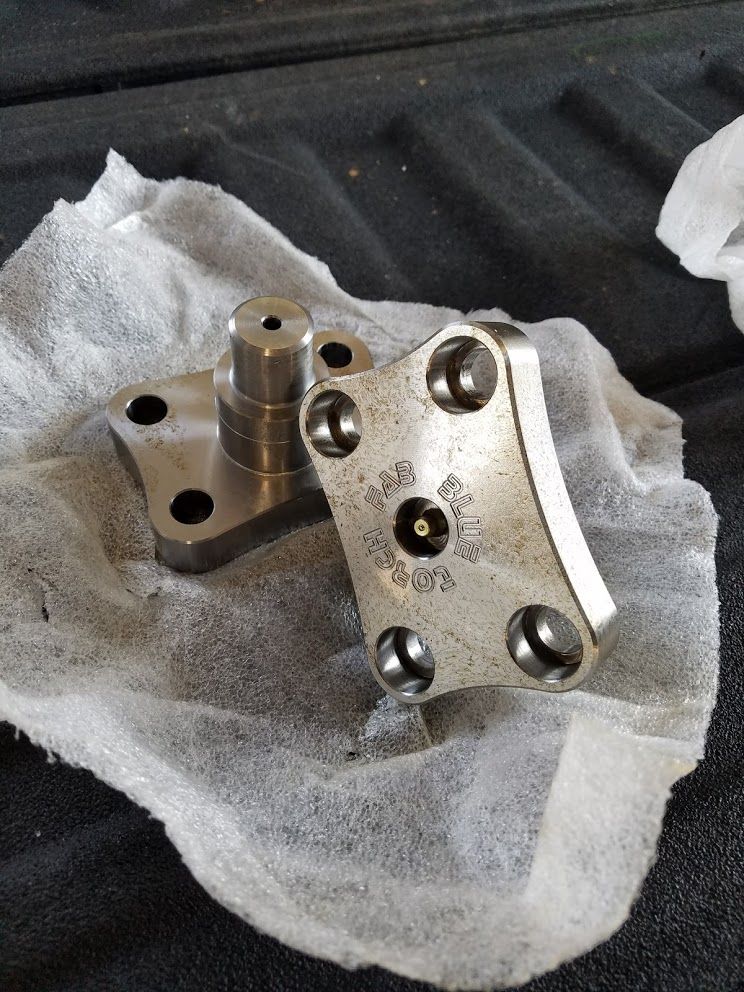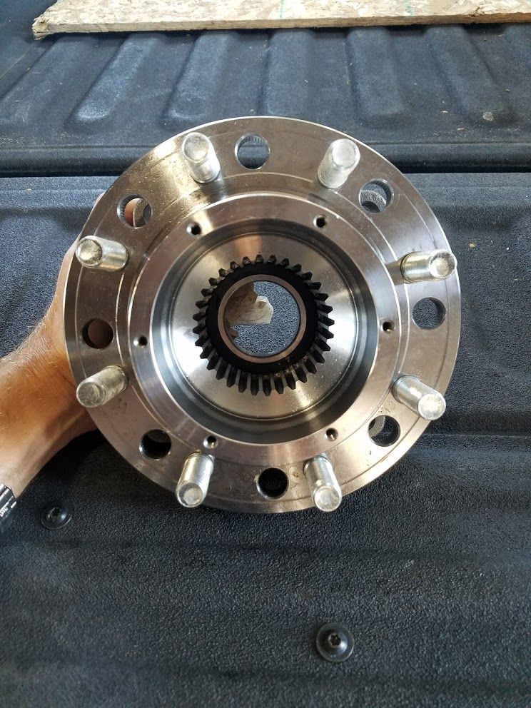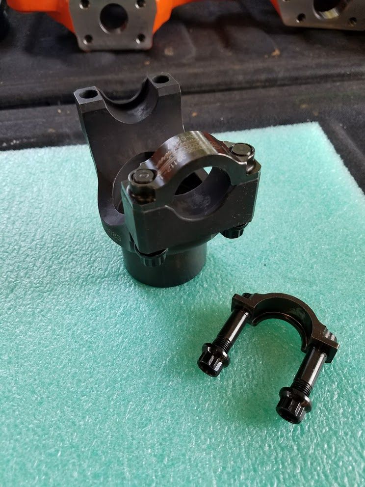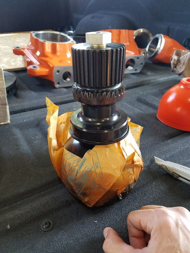 Got the UBs and rotors redrilled by Hudlow Axle. He did a great job and went ahead and pressed in the studs for me as well. He also cut away some material in the back that will make future stud R&R much easier. Calipers are huge.