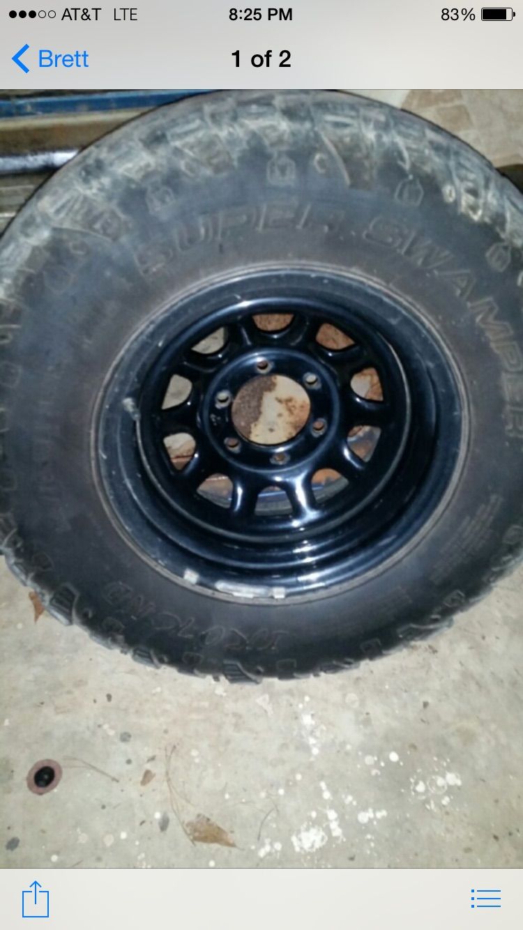 jaydee1975 Well-Known Member Joined Jun 17, 2010 Messages 461 Location eastaboga, al Jan 30, 2015 #1 Like the ***le says 16x8 d windows with 265/75/16 iroks with app 25%tred.. No plugs or leaks asking 250 or best offer!! Thanks!! Selling for a friend call Brett at 256-453-7617 or Jaydee at 256-310-7725 Attachments image.jpg 101.8 KB · Views: 102