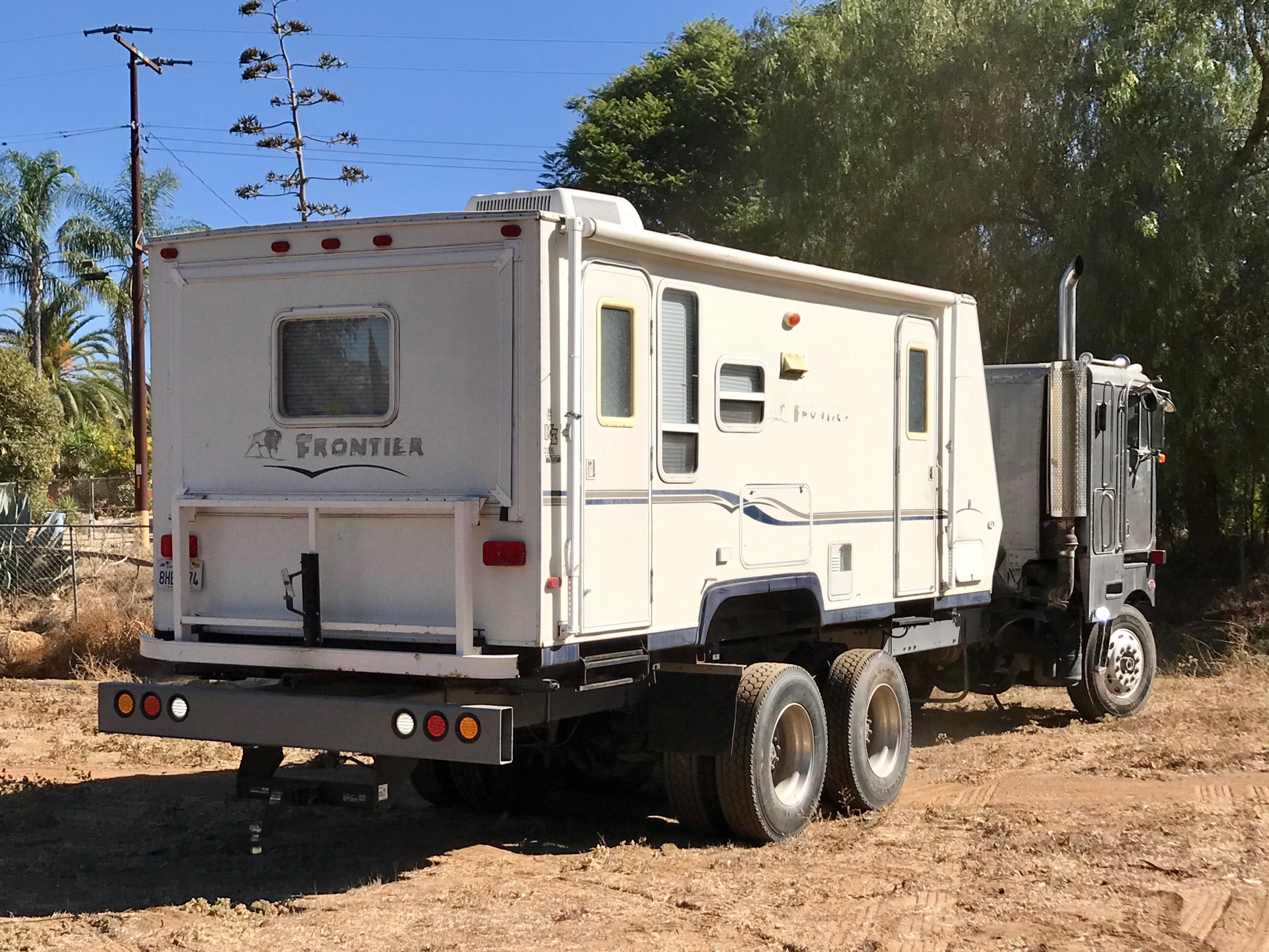 Camper on rear is welded to tube steel and bolted to frame of truck