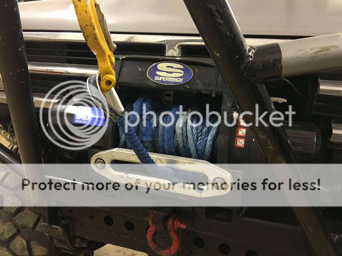 Superwinch EPI 9500 with Synthetic line, wired to in cab controls. Also hand held remote inside truck if needed.