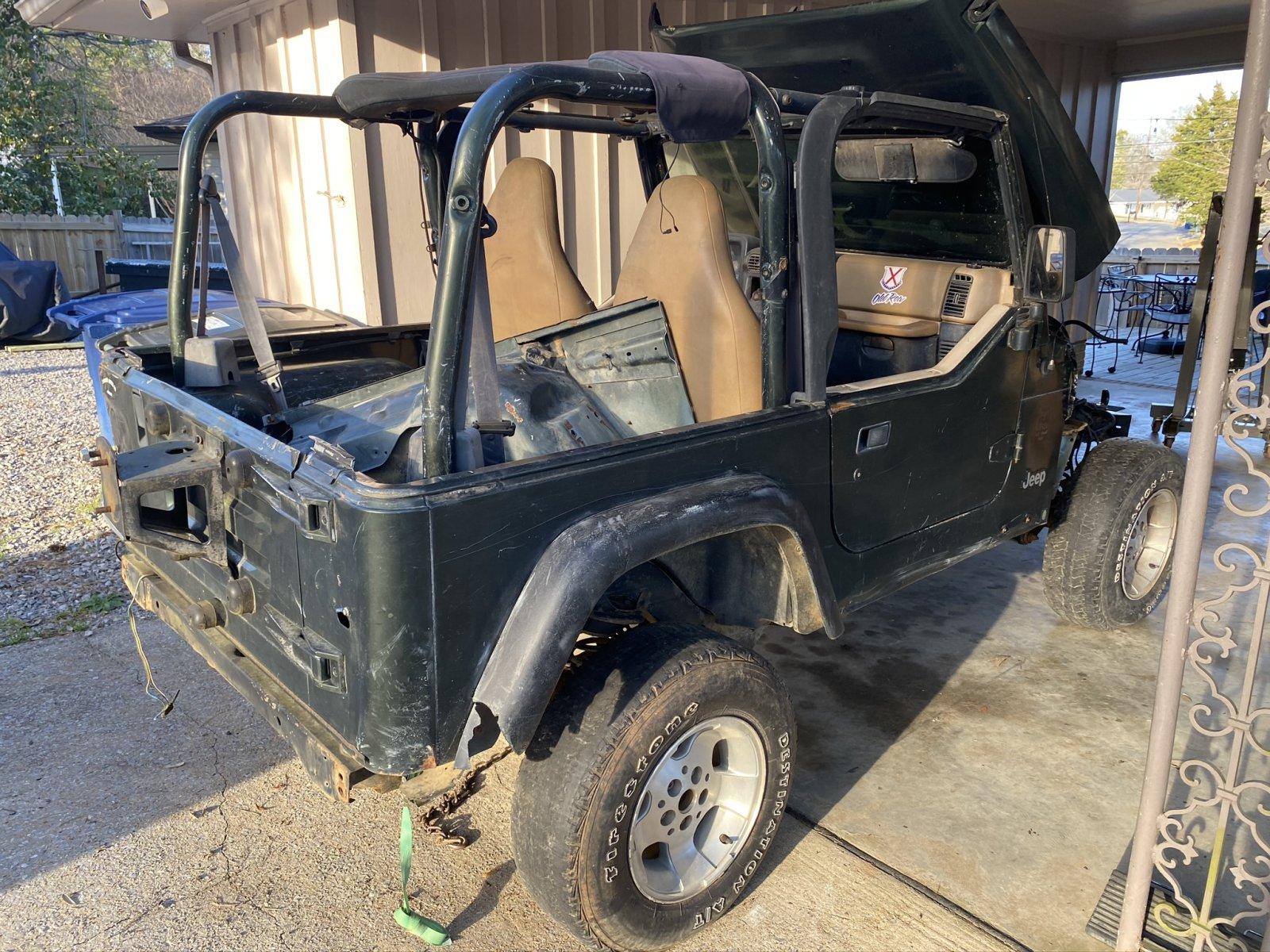 I bought this 1998 TJ to use as a mock up for my Magnum swap and am almost finished with it. Body and frame are 100% rust free, however this was someone's trail toy, so the body isn't perfect. Grill and fenders are not pictured but are included. This has absolutely no drivetrain and the motor mounts have been cut off. Jeep will be sitting on all stock axles and suspension prior to sale (currently sitting on ZJ axles and springs). I have a clean ***le in the POs name and is ready for your signature. I will have a 2.5L, 5.2L Magnum, 44RE, 231J and a few other misc. parts that will be for sale at a later time if interested.