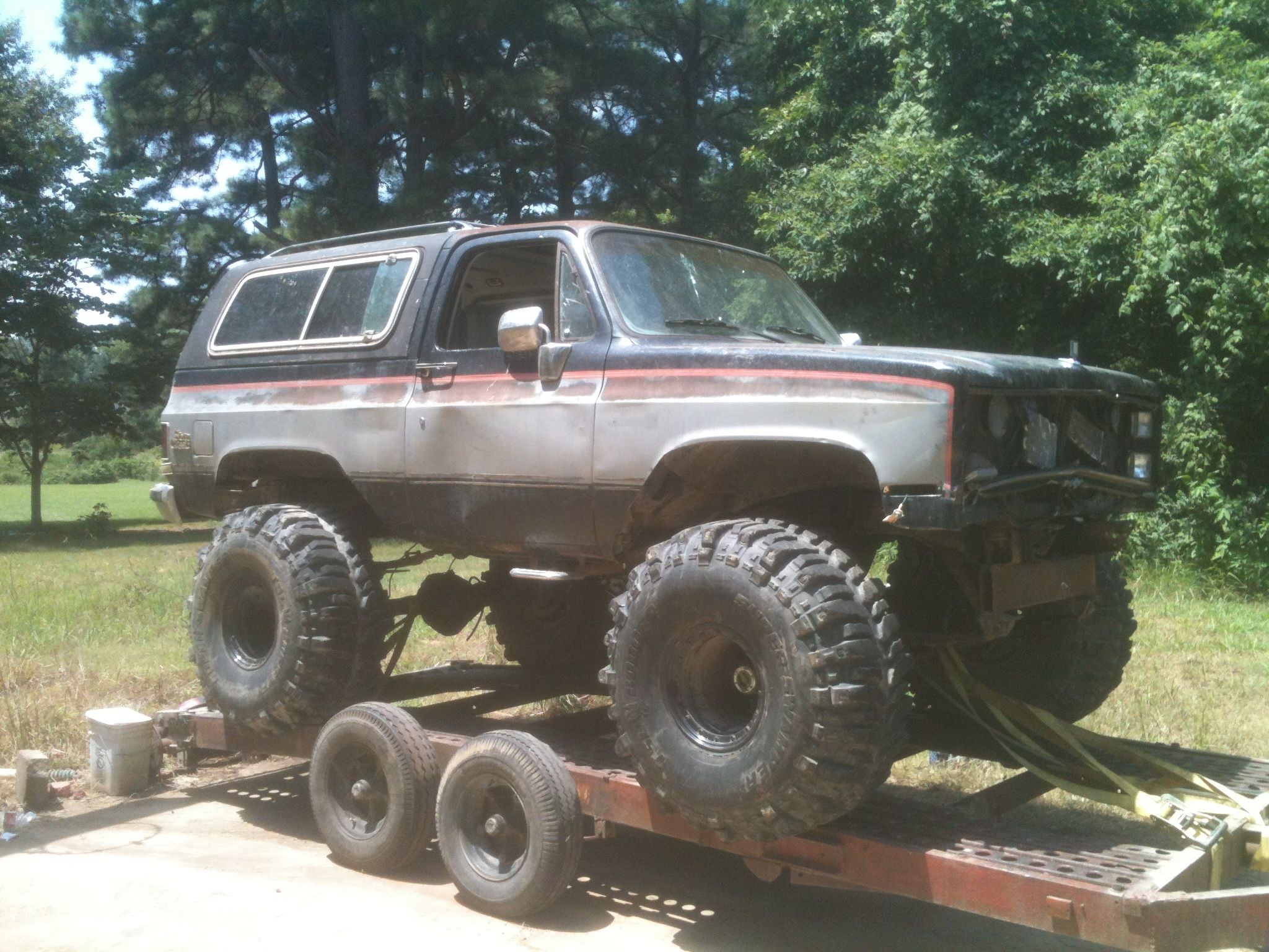 86 k5 with 305/700r4 and 208 tcase. Runs good, plenty power but does smoke a lil. Everything seems to work like it should. Body has dents on both sides but is solid. Good top. Blows heat and air. leaks freon tho. Electric windows work but slow. No carpet no tailgate or back seat. Front seats are rough.