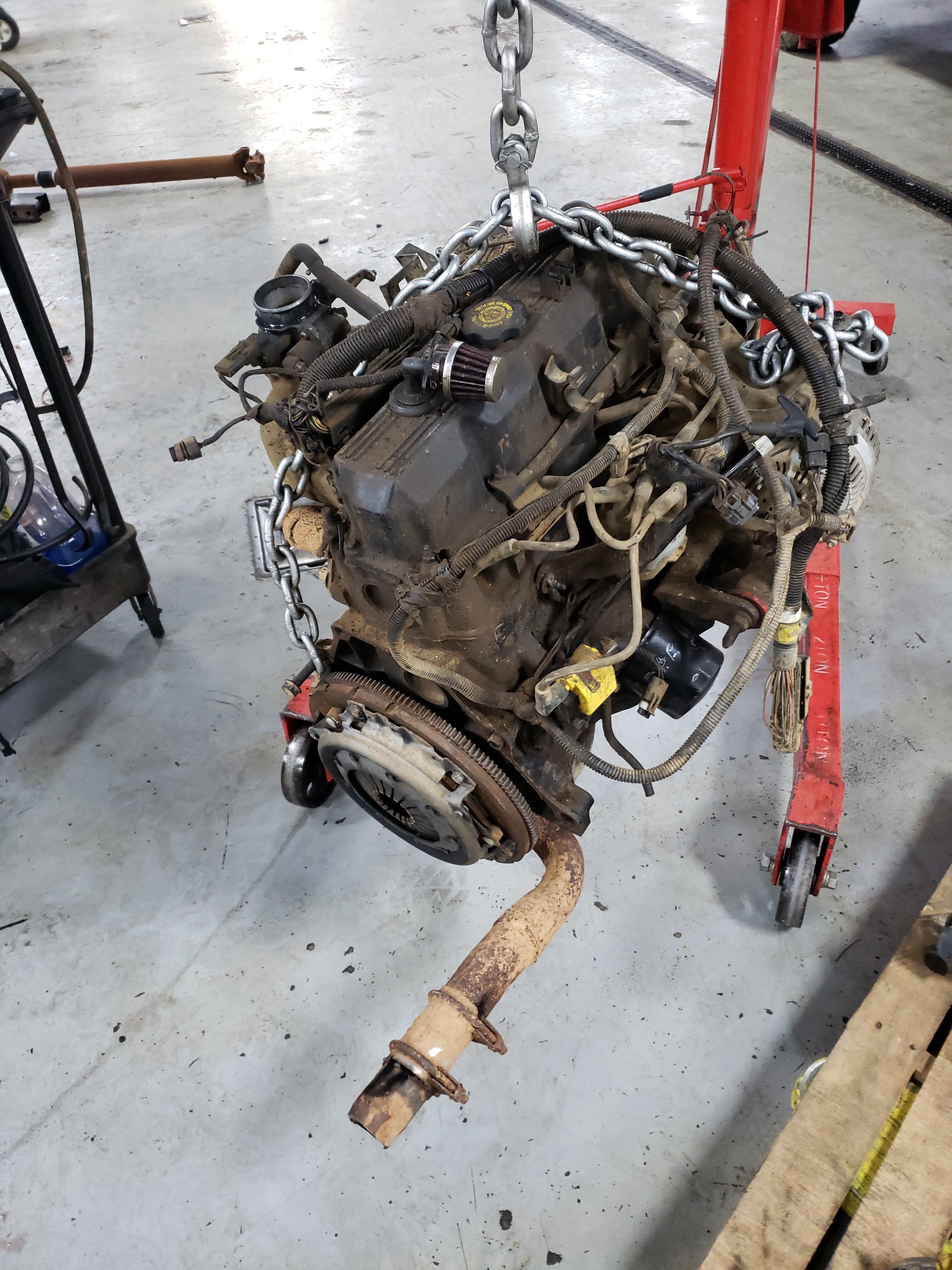 Selling a 95 2.5 jeep engine complete with banks header, 4 hole injectors, 4.0 throttle body, new power steering pump, 2 year old alt., and poly motor mounts. also selling an ax5 with a 2 year and 3 ride rebuild. newer ceramic/kevlar clutch. I have owned the jeep for 14 years and have run synthetic oil and Mopar filters since day 1. 117k on both engine and trans. good shape and ran great. pcm, engine harness and rear cv shaft included as well.
