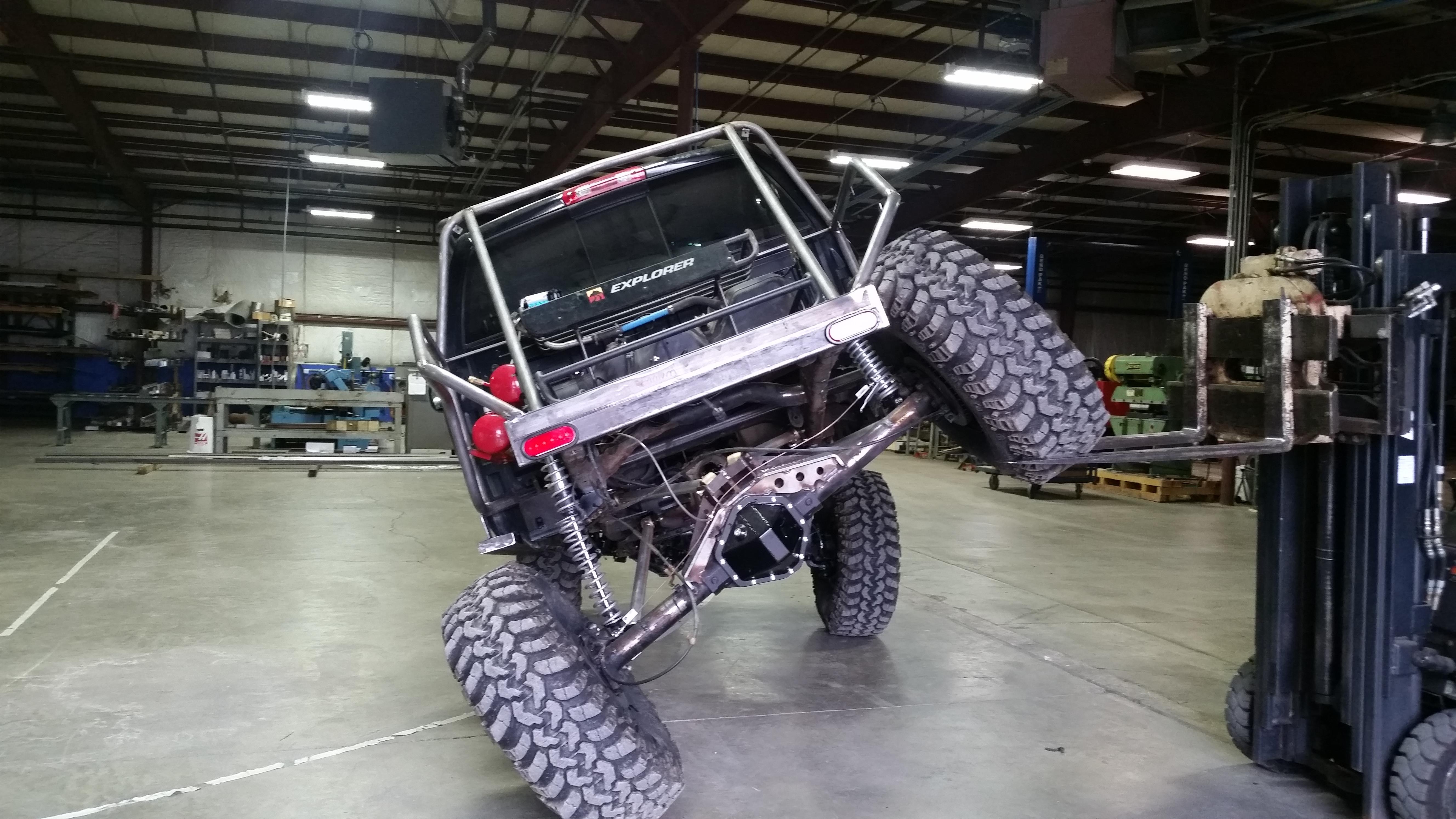 Dual triangulated 4 link rear, 7075 aluminum 2" link arms with limit chain and anti-rock rear adjustable swaybar