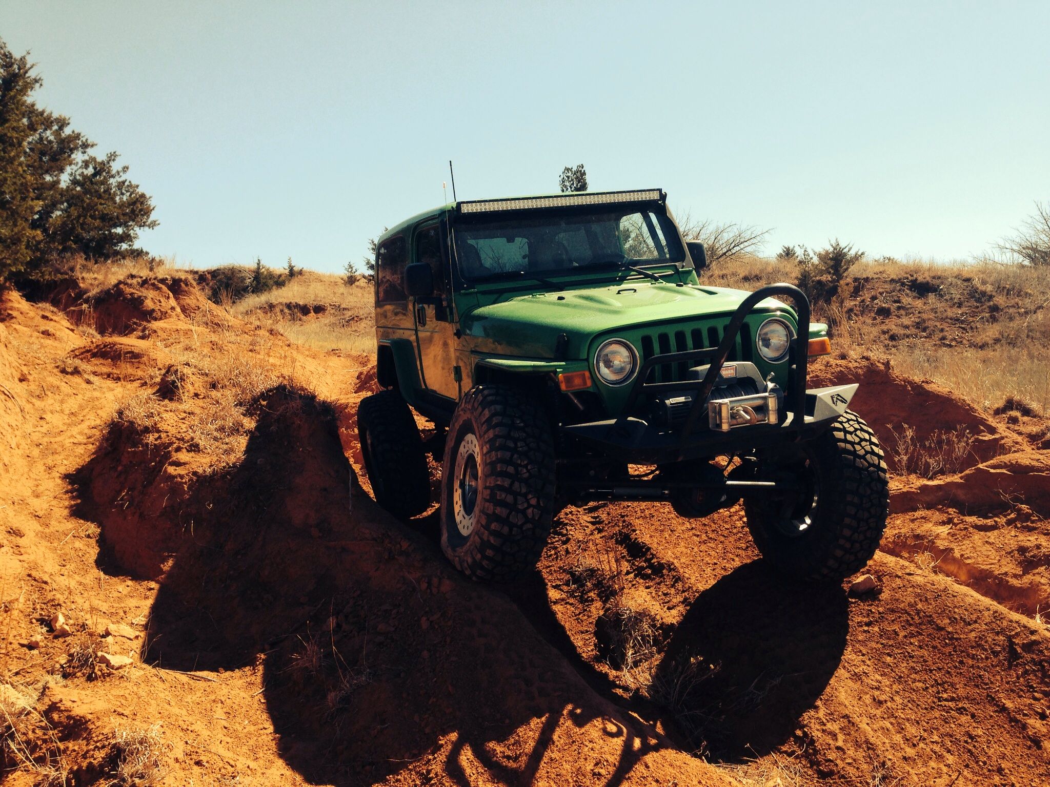 Built by m40 in Moab. Stock 4.0 ltr, auto trans, 231 t case, Tera crd 60's, 5:29 gears, ARB's, 4" wider than stock, fabtech 6" long arm, fabtech skid, psc assist, m40 cage. Drives down the road great at 70 mph 39,xxx original miles call or txt with any questions (580)-571-4824 located in Mooreland Ok New price 30k