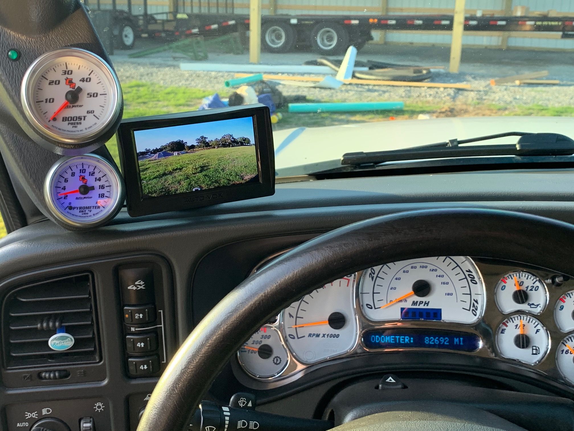 Autometer Cobalt C2 Boost and Pyro Pillar gages with hidden Autometer dimmer switch.