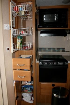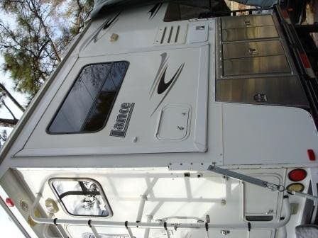 The Lance 861 comes with 36 GAL of water, 40 LBS of propane, and 0.17 cubic meters refrigerator/freezer