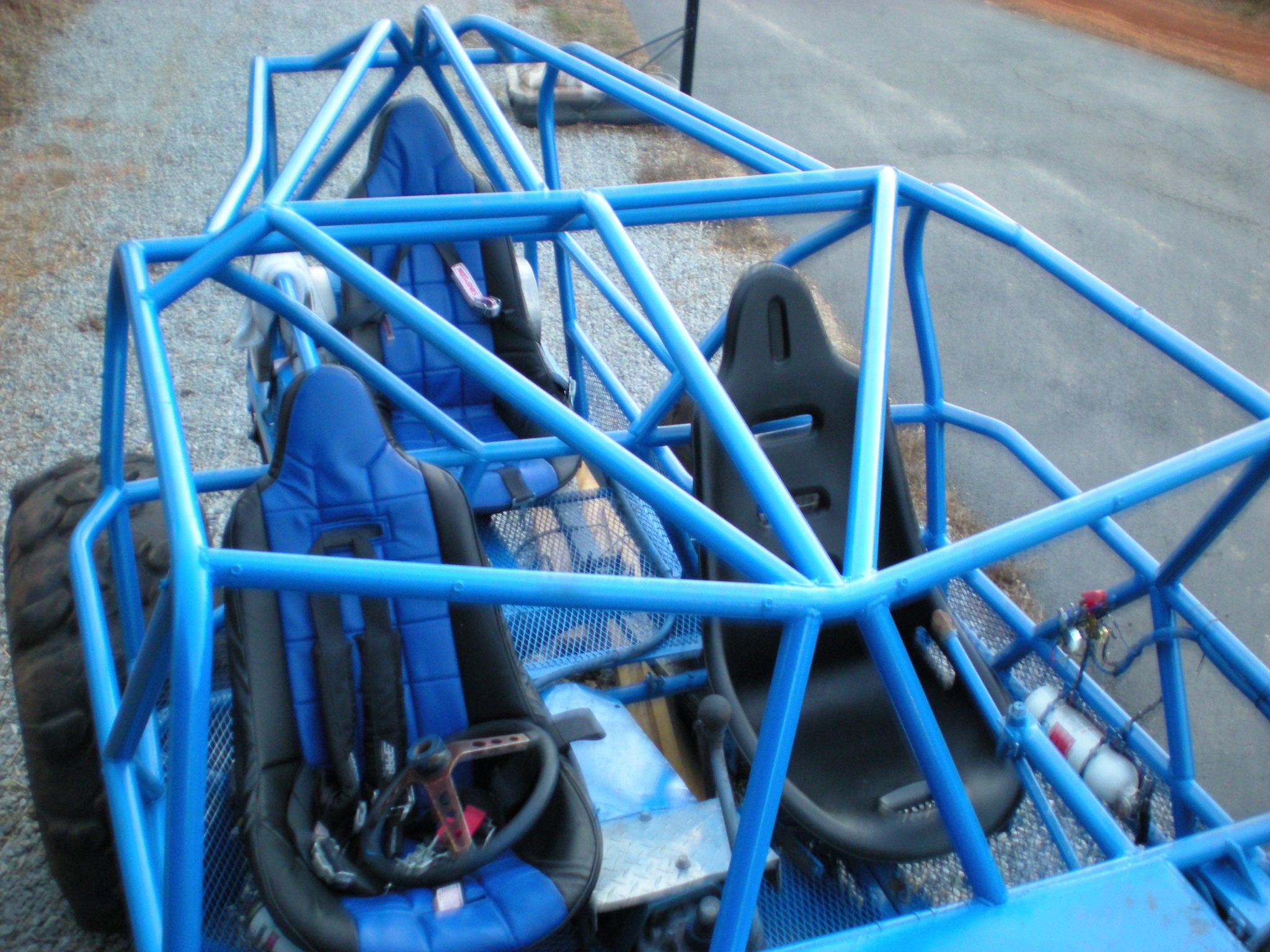 3 seater toyota tube chassis, 116 in wheel base, all toyota running gear, dual cases with factory gears, 529s front and rear with lifetime warranty, longfields in the front axle, motor completly gone through 3 years ago, buggy was built 4 years ago and wheeled very little, empco 425 propane unit just completly gone through with all new gaskets and diaphrams, brakes just completly gone through, all new shocks, all new seat covers, the motor is very strong and up, 63 in chevy rear springs and rears in the front, chevrolet power steering box, $3200 bring your wheels and tires. Sold without wheels and tires. 770-540-657one