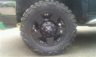 33" Nitto Mud Grapplers on 18" black KMC Rockstars! There uni lug 6 lug chevy, ford, toyota, ect. About 4 months old maybe 400 miles on them, 98% tread, I have the complete set with a matching brand new spare mud grappler! I paid over $2500 looking to get $1600! Can't get to load pics but text 205-495-3310 and ill send u some! Thanks