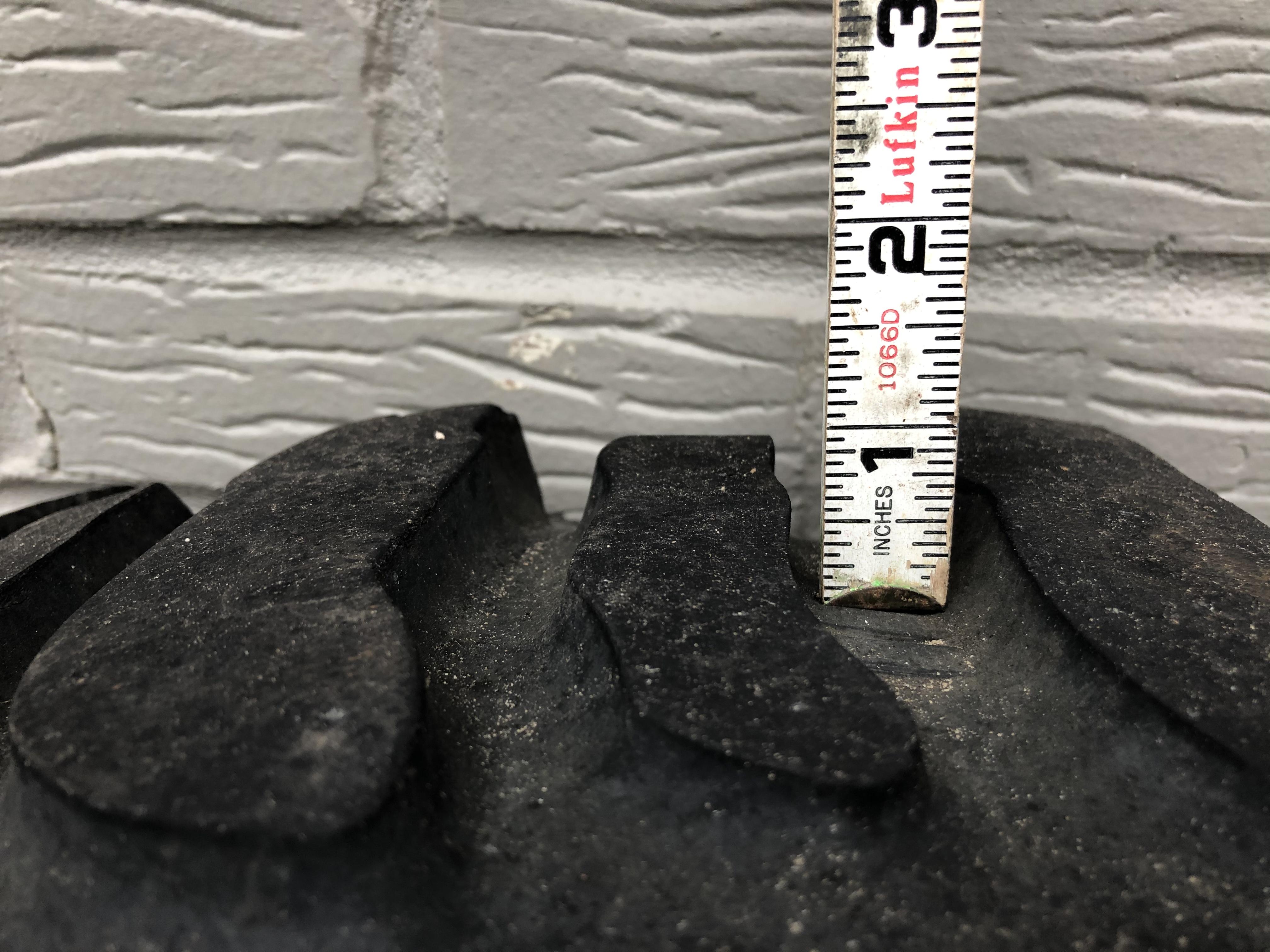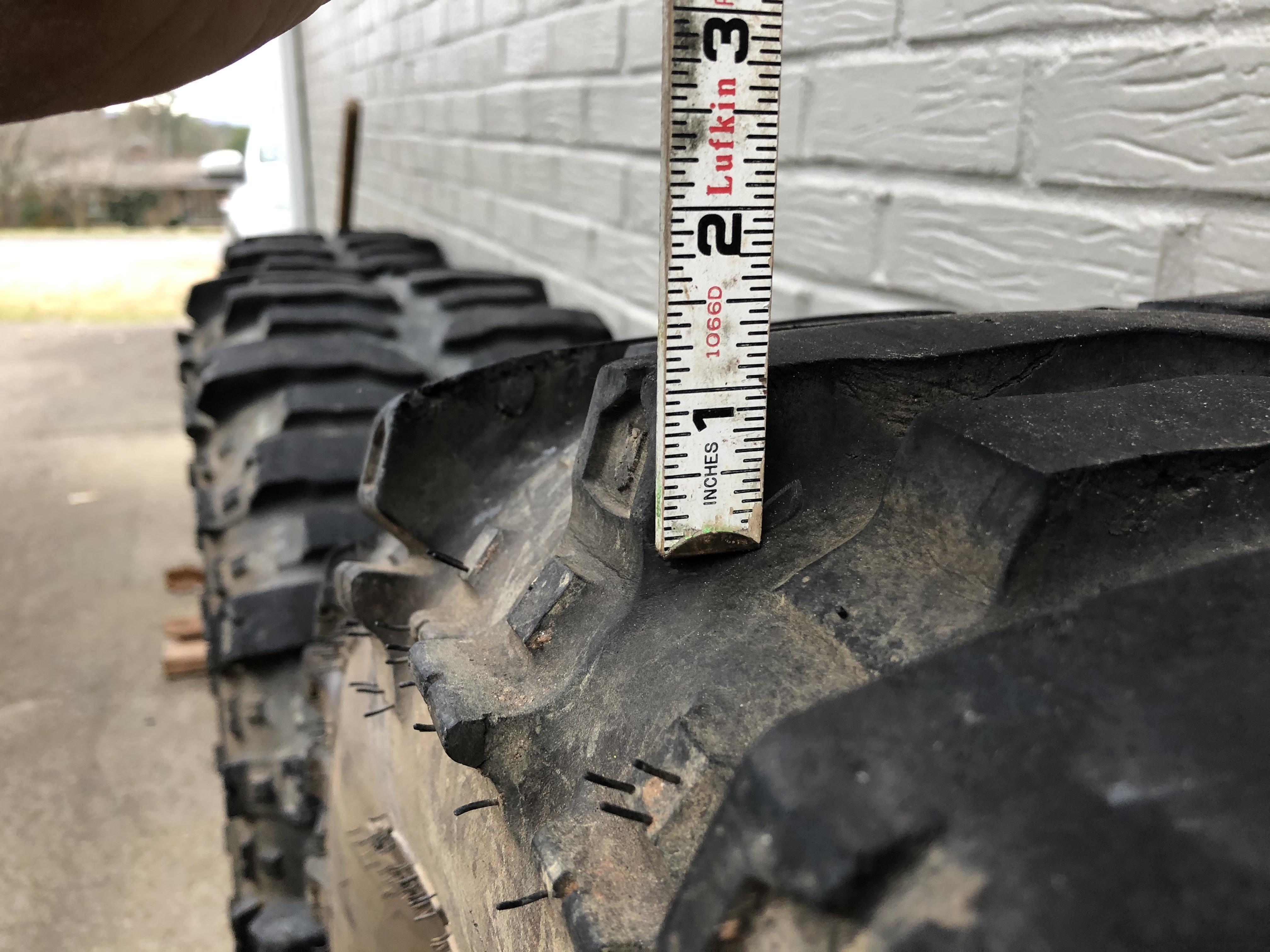 They have about 1/2” of tread in the middle and over 1/2” at tread bars. All held air and have no patches, no dry rot. Just took off Jeep for a road friendly tire.