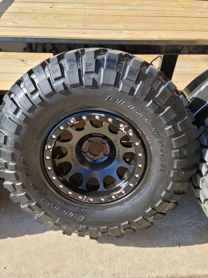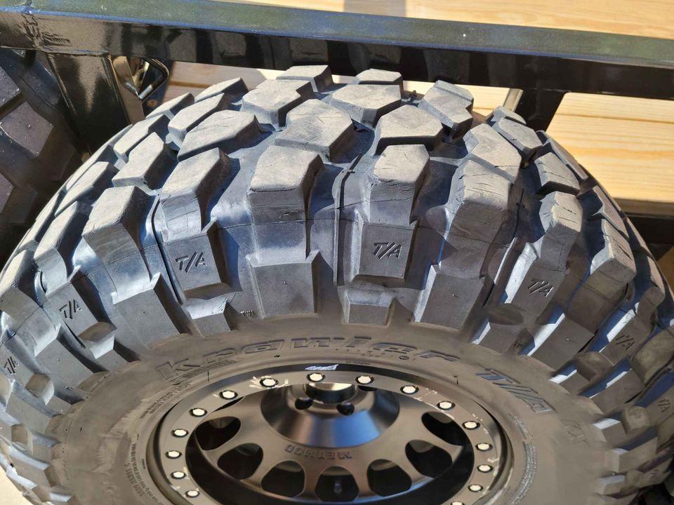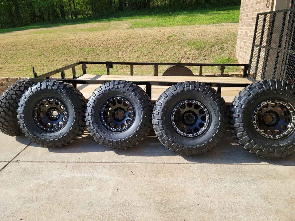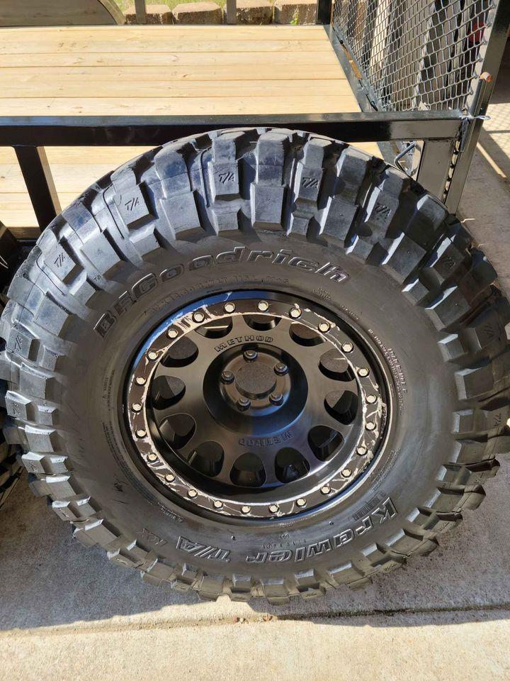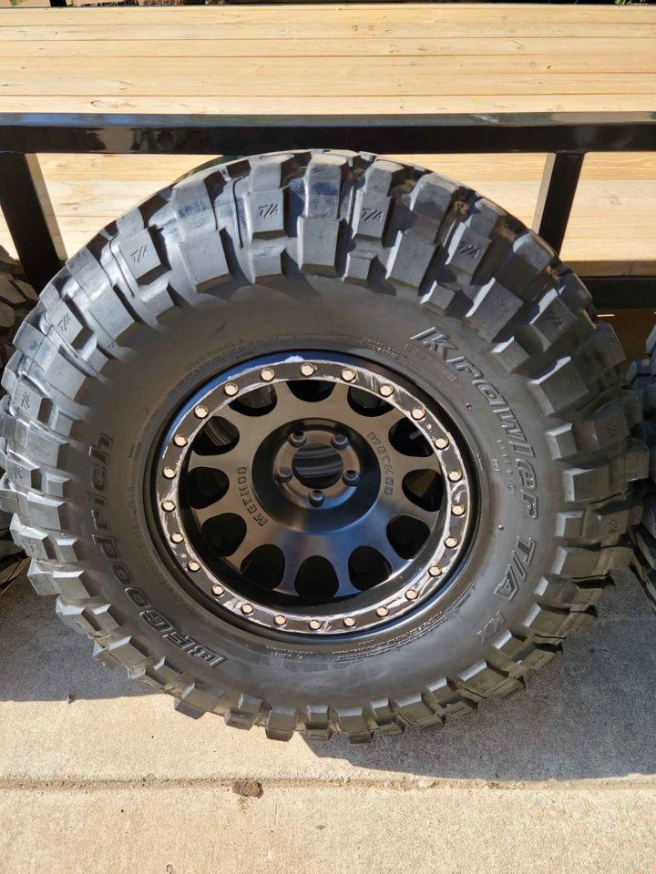 5 - 37X12.50x17 Blue Label, NON-STICKY BFG Krawlers on 17x9 Method Beadlocks. 5x4.5 TJ/LJ etc. Bolt Pattern. Tires are 90+ % treat but do have some trail rash. Wheels are like new but do have some rock rash on the rings.