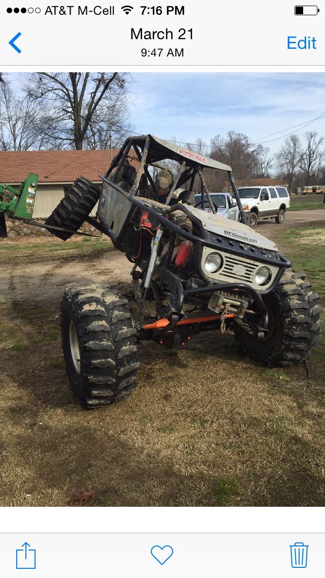 Full four seat rock crawler , four adults comfortably , great family buggy . Hendrix motor sport chassis , f-toy #40 . 2.7 fuel injected Tacoma motor with header . 5 speed Trans with twin cases , twin stick ,4.7 reduction gears and chrome moly longfield main shaft in rear case. Front end is custom built HP Dana 60 , narrowed and switched to passenger drop . 4:11 gears , Yukon axles , 6 lug and 3/4 ton brake conversion and Yukon drive flanges . Rear end is a custom Diamond housing with FJ80 Toyota landcruiser 9 1/2 center section , 4:11 gears and alloy USA axles . Front and rear are both welded. ALCAN Super flex leaf springs ,$2,000. Anti rap bars front and rear. Full P.S.C hydrolic steering. Corbeu Seats with harnesses . Warn winches front and rear 8 and 9 thousand . Onboard air with tank and air horns . REALLY nice buggy that works great. 115 wheelbase , 24 inch at belly pan. 15 gallon fuel tank.Buggy has 39.5 x18 boggers on rear with beadlocks and 39.5x13.5x17 Iroks with beadlocks on front !! Call or Text for more info ,Scooter 901-652-3265