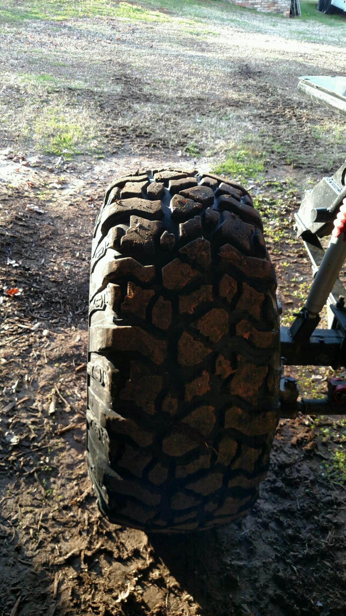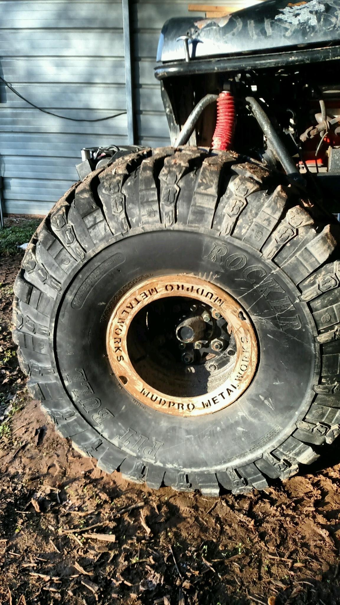 44" Pitbull Rockers with 85%+ tread on h1 Rockwell pattern wheels. Tires have no patches or plugs. Wheels have PVC inserts. Wheels have removable centers. Also have a brand new spare!