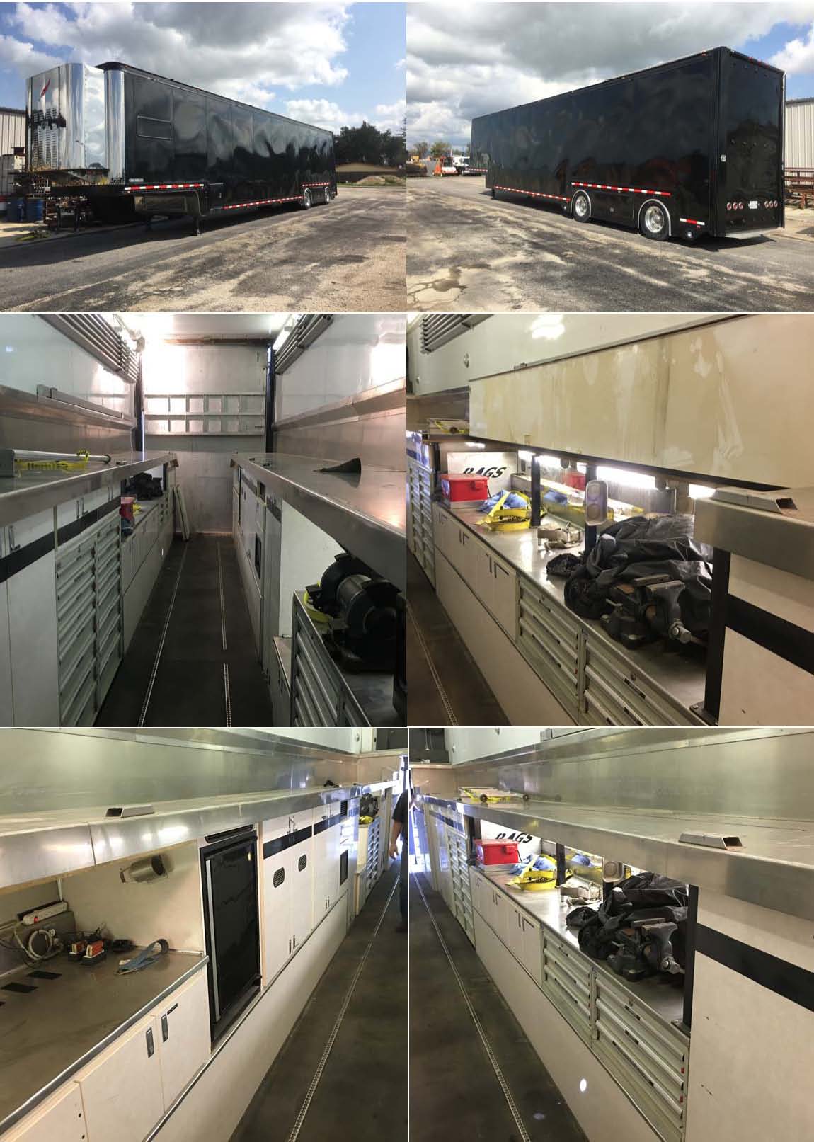 1998 Featherlite 53 ft. – Ultra 4 Hauler, Hydraulic Lift Gate, 78" Height where cars go, 92" Wide at Rear Door, 32' Long where cars go (carried 2 Ultra 4 cars and Polaris Ranger at once), Full Size Shower, Toilet, Sink, High Output Water Pump, 150 Gallon Fresh Water Tank, Tankless Water Heater, 80 Gallon Gray Water, 80 Gallon Black Water, 20 KW Diesel Generator (400 + Hours), 50 Gallon Fuel tank with Fuel Pump, Air Compressor, Bench Grinder, Solvent Tank, Lista Cabinets, Vise, Tire Racks, Storage Cabinets, Full Lounge Area, New Dunlop Tires (2017), Air Conditioning and Heating throughout Trailer, Observation Deck with Railing, Black Wrap. New (2018) Full Awning, Approximately 53'long by 16' wide, Has zippered sections and viewing windows with portable lights. $125,000 or best offer