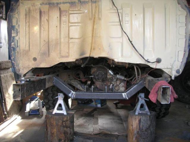 Well I bought the truck like it is in the first picture. specs are, 350, th350, 205, 4.10s and open f/r, leaf springs all around and 3in body and 38s. I decided to clean out he moldy bug infested cab and put in bedliner on the floor and back of cab. I also remounted the shifter and put in some buckets.