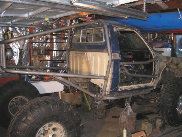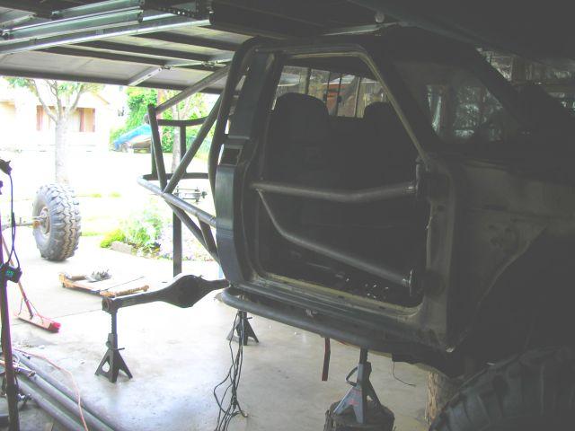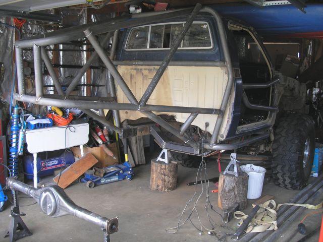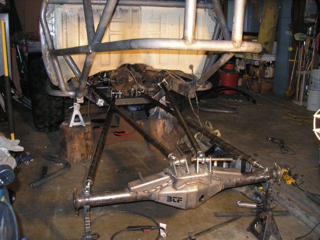 Ive been slowly slowly getting a little more of the rear tubework together. picked up an wider rear housing and cleaned it up. got all the link brackets tacked in place and tested it out, I might have to change it up a bit but it didnt work out to bad. picked er up and took it outside to work on it and enjoy the good weather. I will be running all-pros 6in long travels in the front. We got those on the other day and I am pleased with the height I got. It is lower than I had planned but Im sure that will be a good thing.