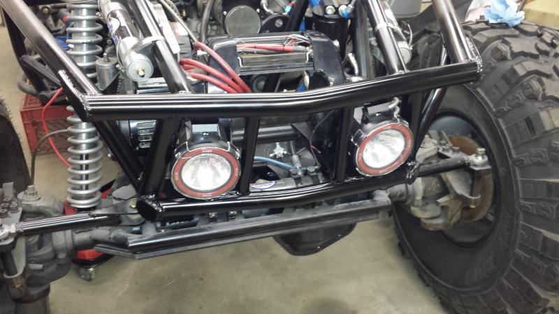 Got the center bars cut and burned in. This will protect the lights from the rope and keep the rope also protected from sharp stuff that could possibly damage it. I also made the light mounts and burned them in.