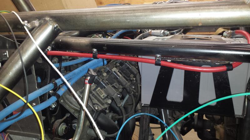 So since I had the electrical center in I wanted to start with the main power feeds. I threw the battery in and saw something I did not like. You can see the positive battery post "above" the tube line. If I turn the battery around the positive post is 1/4" away from the tube work. I had thought about when the hood gets built bump the sheet metal up.