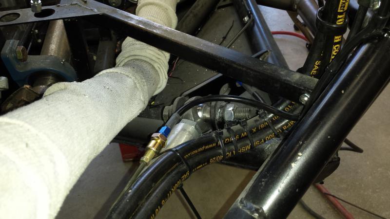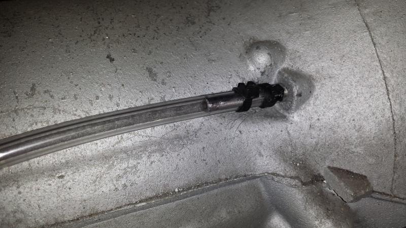 One thing I had noticed was the vent on the th400 was gone. It was hard but I was able to see down the hole and found a good portion of the vent still in the trans. Took some work to dig it all out. At this point I had a few choices one being drilling and tapping to 1/8". I chose to take 1/4" hardline and filed it down to a interference fit and worked it into the trans.