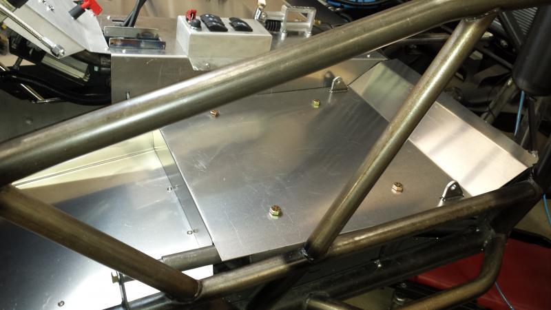 So that completes the interior sheet metal. My original intention was to also enclose at the front of the trans. I spent a good few hours and could not come up with any good ideas that didn't look like complete ****.