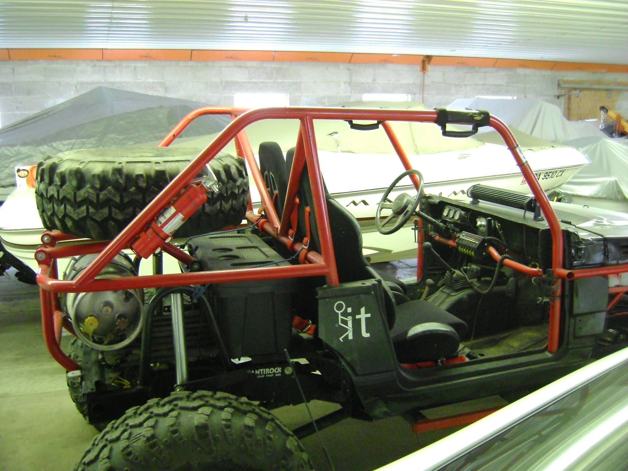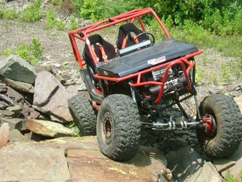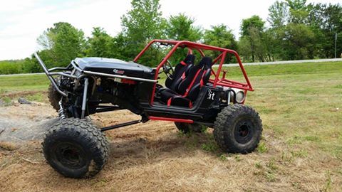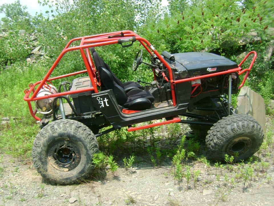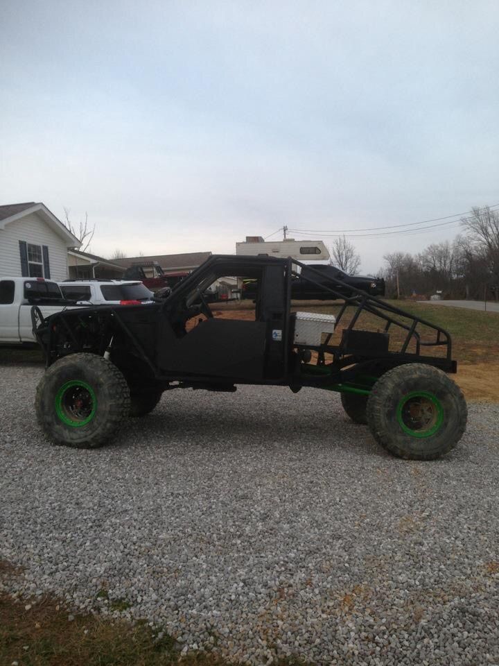 1987 Suzuki Samurai Truggy back halfed w/ stock 1.3L w/webber carb set-up(still got stock), 5 speed manual w/clear ***le. 4 link front and rear 3/4" hiems, Sway-A-Way Racerunner 20 series air shocks on front. 74" wide x 114" Wheelbase. All 1.75" DOM construction with 3/16 wall on bottom and all main exo and 1/8" on bracing. Hydro-steer, Summit racing 15 Gallon Fuel cell w/foam and .375 aluminum fuel line kit w/fittings and inline electric fuel pump and filter. 40x13.5x17" Nitto Mud Grapplers on 17x9.5" 32 bolt bead locks
