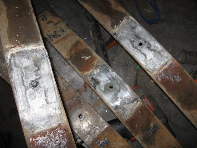 Cant hang springs without shackles. Got busy cutting some 3/8 flatbar to length.