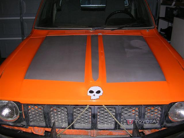 So heres alittle problem I found when I mounted the rear tires on the soon be gone yota axle. Since I was kinda low on money at the time i decided I would do the FREE things next. . . So out came the paint gun and the airbrush and I started on the hood:cool: