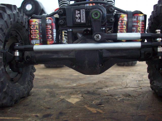 made my own steering links, had to lift the tie rod so it would clear the diff, made from 1/4 brake line, 6/32 all thread and some ends and balls I had already, also had to lift the servo plate 2mm to clear servo arm, could have gotten away with 1mm I think but works great!:cool: