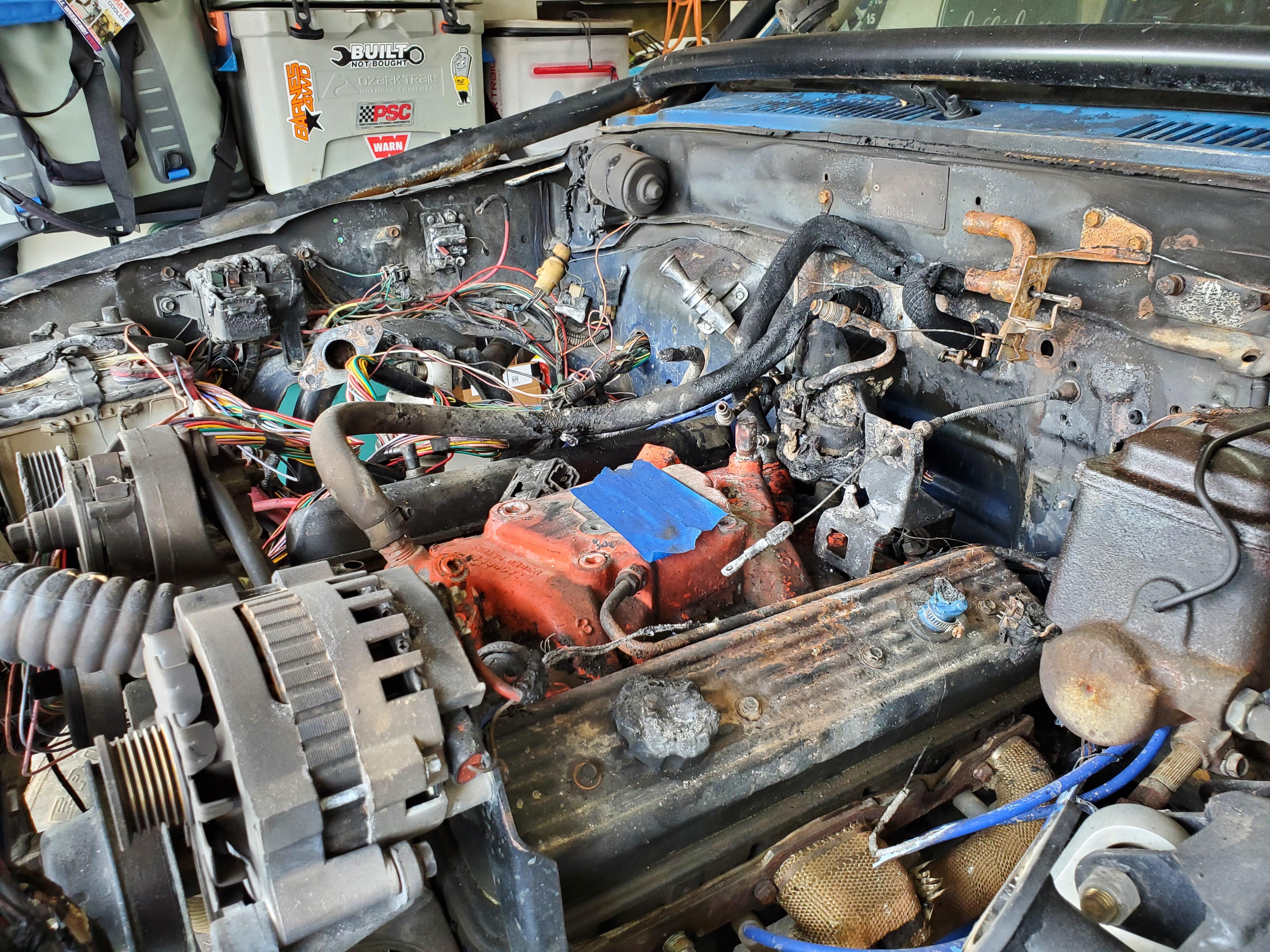 Not long after my trip to Windrock last spring, I had a crazy engine fire that started out of no where. I had shut the engine off after loading my truck on my trailer. Strapped the entire rig down, walked in to the shop to grab my spare tire, walked back out to the truck to flames rolling from under the hood. Melted everything plastic or rubber that was under the hood. Completely trashed anything wiring related. The only plumbing that was salvageable was the steering lines. I think the only reason they survived was because they were so low in the engine compartment. Not real sure on the cause but I am leaning towards a ****ty oil filled K&N air filter catching on fire after a back fire in to the throttle body(never heard a backfire). It's the only thing I can think of and it was obvious most of the heat was concentrated around the throttle body. That may be just because that's where the fuel was. Luckily I had several fire extinguishers close by and we were able to get it extinguished quickly.