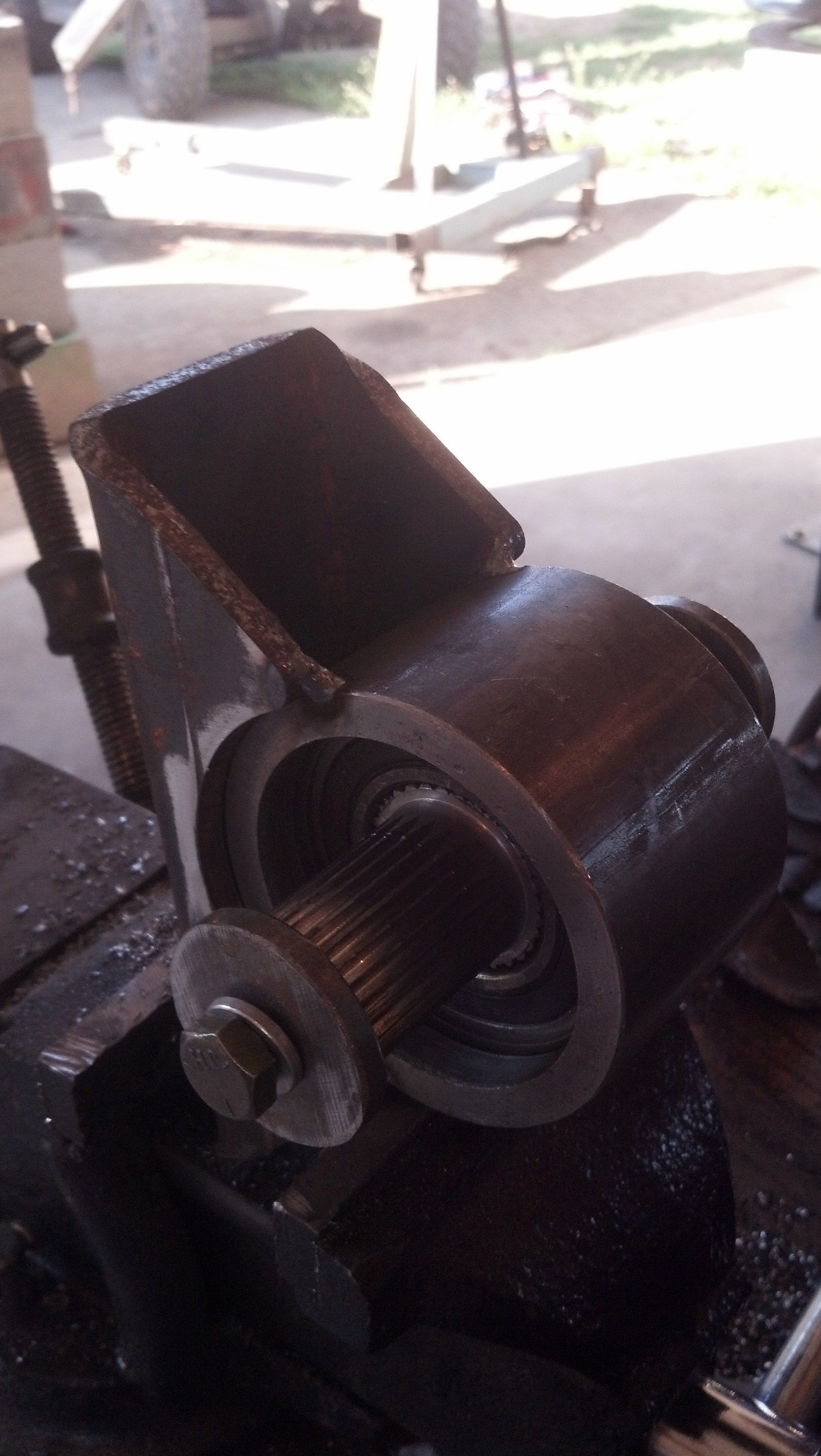 I am rebuilding my buggy with a 5.3/350/203/205 in place of my old 4.3/Toy 5spd/toy duals. My 60 and 14 both have Toyota flanges on them. I also have some nice drive shafts that I would like to use. While compiling parts for the swap, I got 32 spline f &r flanges for the 205. Ultimately I would like to be able to have drive shafts that are close enough in length that I could have one spare for front and rear. This means the front will need to be a two piece shaft, requiring a carrier bearing and short shaft setup.