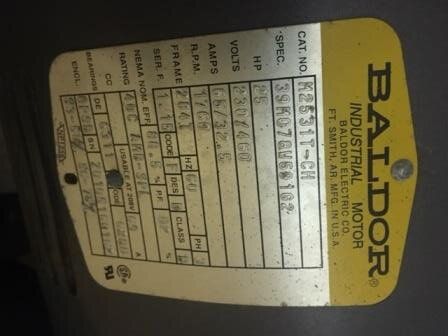 25 horsepower 3 phase Baldor motor