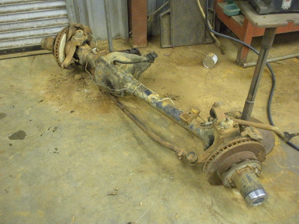 rear is a dodge dana 60 full float with chromolly shafts, 5.38 gears, spool, disk rotors,