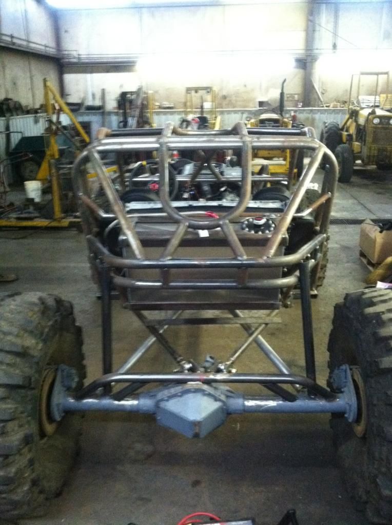 Front end is a ford kp 60 with 5:13 gears, chrome molly shafts, 35 spline outers with dry flanges and a detroit locker
