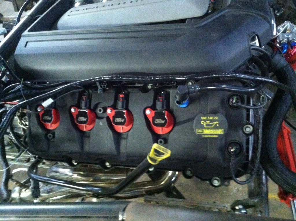 Coyote 5.0(all aluminum 411 hp bonestock) bought as a(30,000mile) long block so all new accessories including msd coil packs with (new) factory ford racing harness/pcm and headers