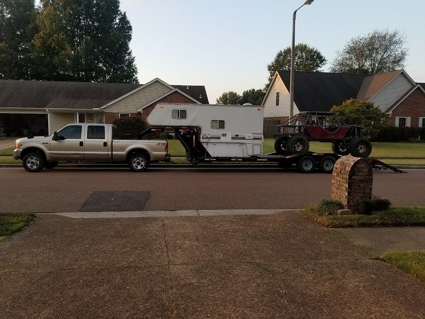 Tires have less than 500 miles, Brand new 10" memory foam mattress Heat and a/c work. No water heater, was ruptured when I bought it so I yanked it. New water pump just installed. 17' of deck behind camper, 83" between drive over fenders. Pulls great when loaded with a rig, sucks ass without due to weight being all forward.