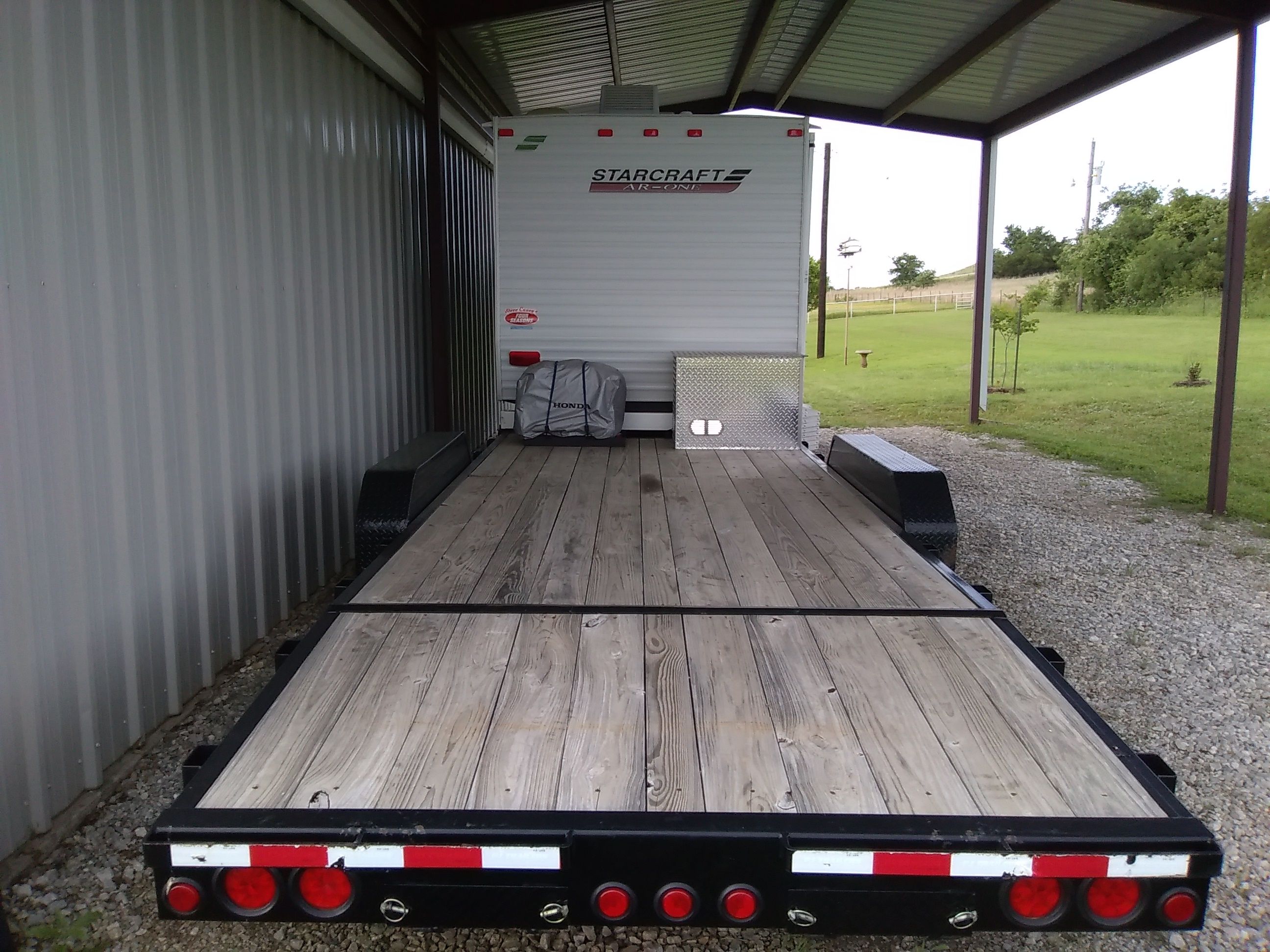 Room for vehicles, crawler, small tractor, ATV’s, etc. on back.