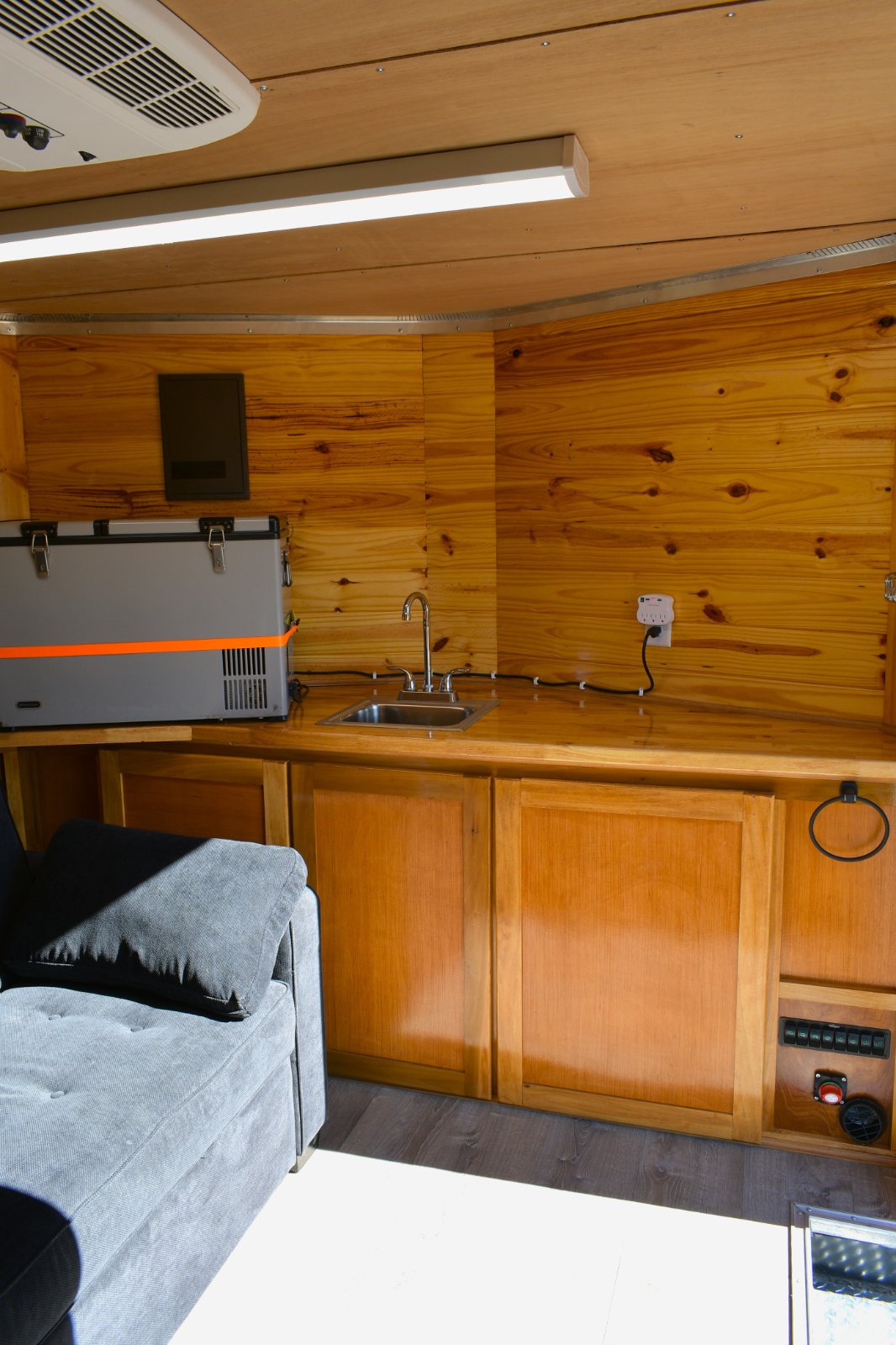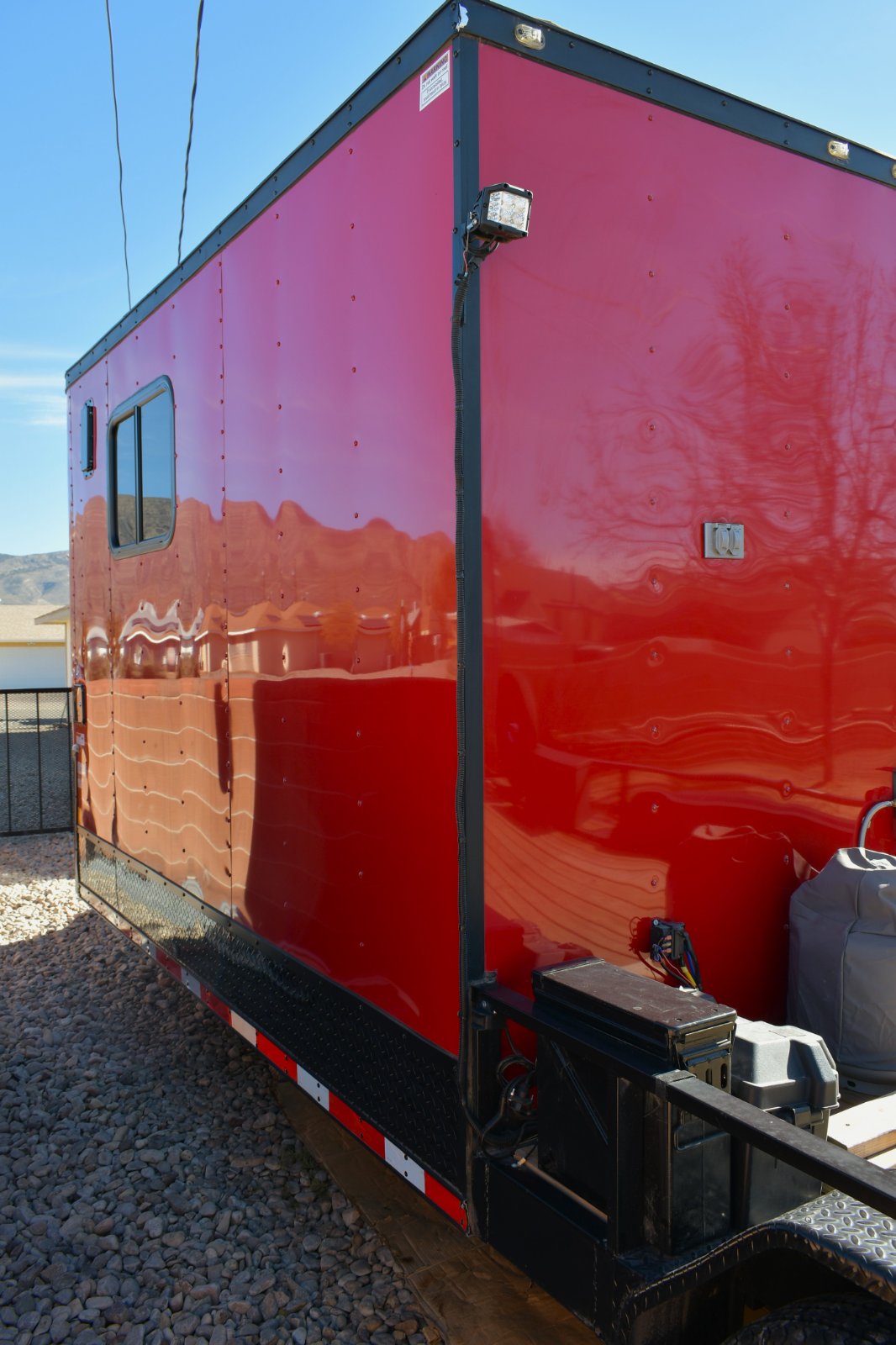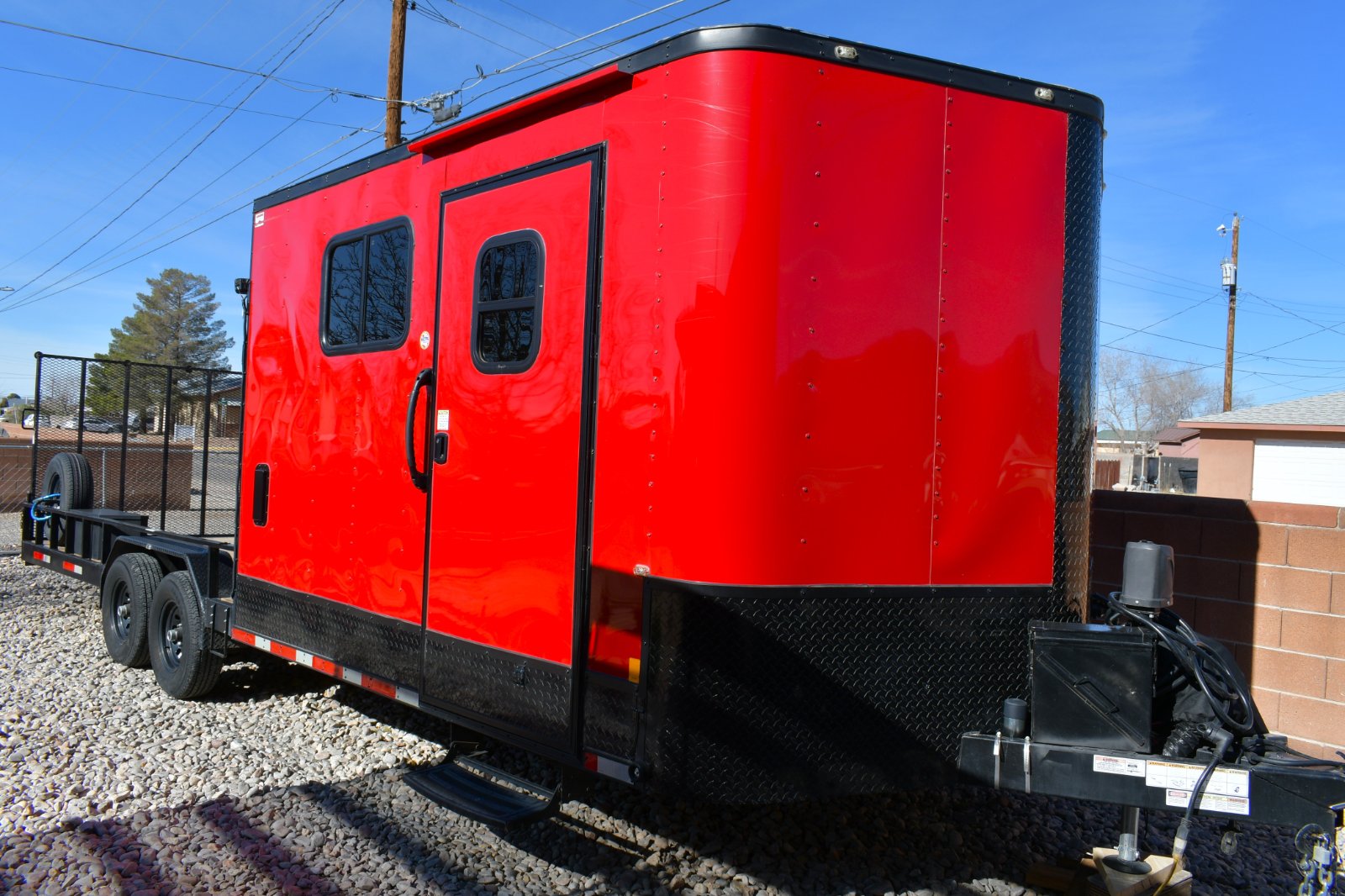 The trailer has 14' living quarters and 14' deck for cargo and winch. Has AC and Heat / water tank / sofa that turns on to a bed / toilet / shower / Black water and grey water tanks underneath / Tankless hot water heater / 30 amp power supply / 3500 watt inverter generator / 2 propane tanks in the rear / Tool box on bed / Wippro 5k diesel heater on the tongue / Electric jack on the tongue / 2 spare tires / brakes on both axles. Fridge/Freezer...no tire kickers please. Clear ***le. Thanks have a blessed day.