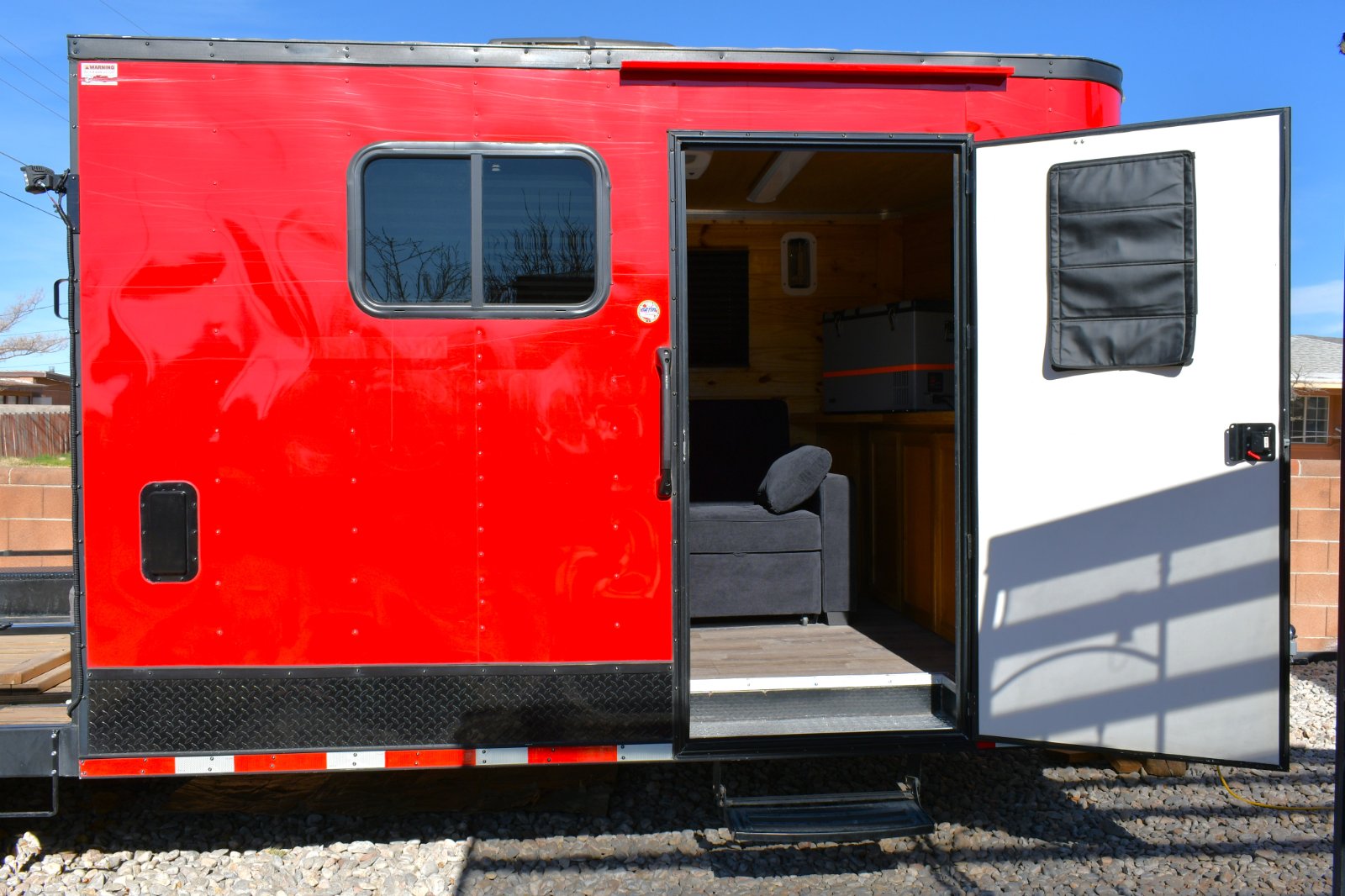 This a 2024 28 feet Crawler Hauler with living quarters . Trailer was used once and still brand new.