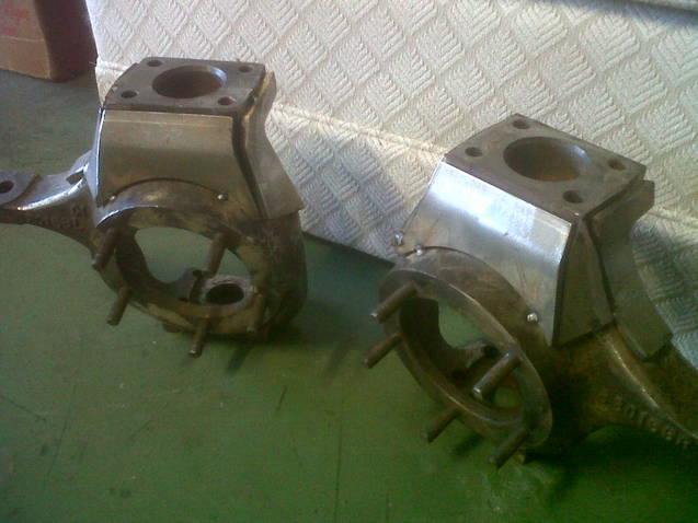 Also got a gusset kit for the knuckles. I can't swing for the reids right now but these should hold for a while. I had to do these in stages, since they are cast.. I preheated them in the oven at 500 degrees and then heated them almost to glowing red with the torch before welding them up (on the highest setting) then put them back in the oven and slowly turned down the heat and cooled them over a few hours time.