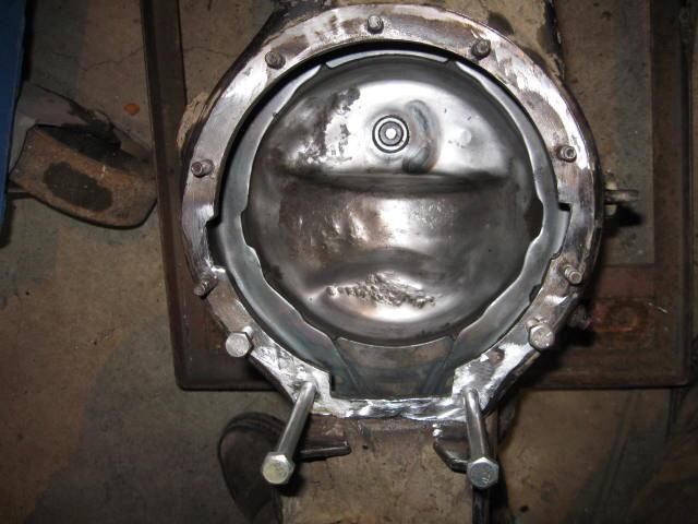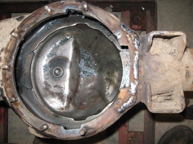 First I cut the Elocker notch and welded up the edge where it is further over than a stock 8 inch diff. Also welded up the two unused diff stud holles.