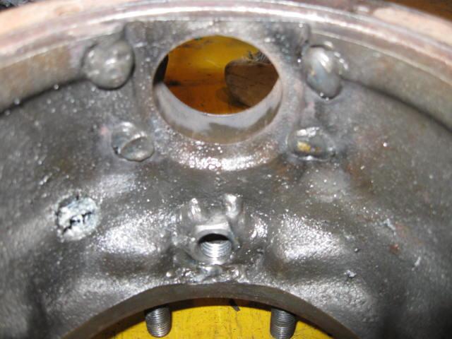 Then I weld a half inch nut inside the knuckle and weld the ends of the steering arm studs inside the knuckle also.