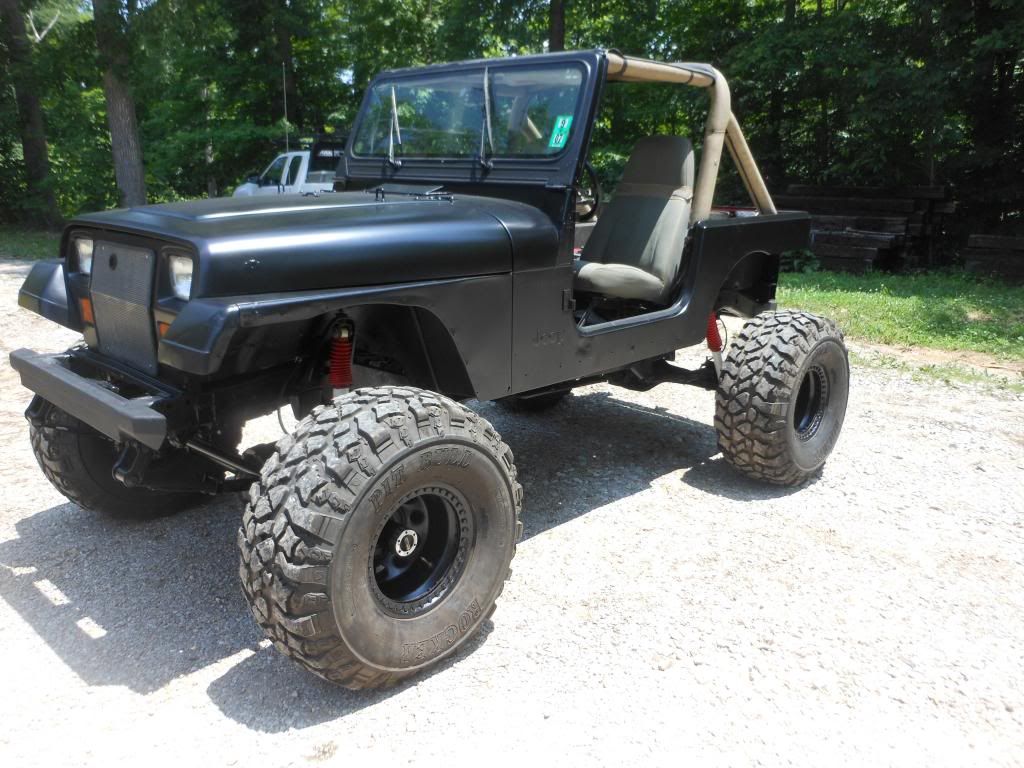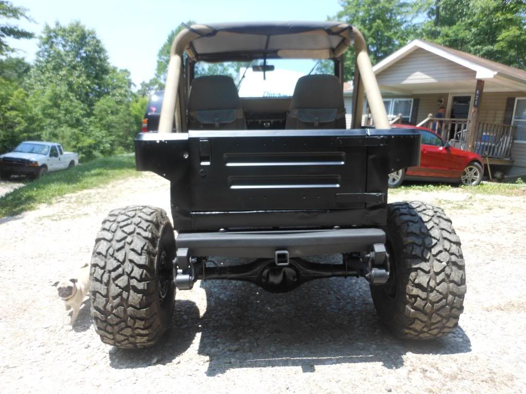 1989 YJ, streched 102 inches. Very solid frame and body with no rust. 4.2 completely rebuilt everything new. New clutch, with pressure plate and throwout bearing. N.P. 231 with slip yoke eliminator. Ford 9 inch rear with nodular housing, Daytona pinion bearing 5:13 gears and spool. Dana 44 front 5:13 gears and spool. YJ has all new bearings, brakes, u joints, and axle joints. High steer with rod ends. 37x13.50x15 pitbull rockers 95% tread on 10x15 bead lock also have spare. RCI 16 gallon fuel cell. No ***le.