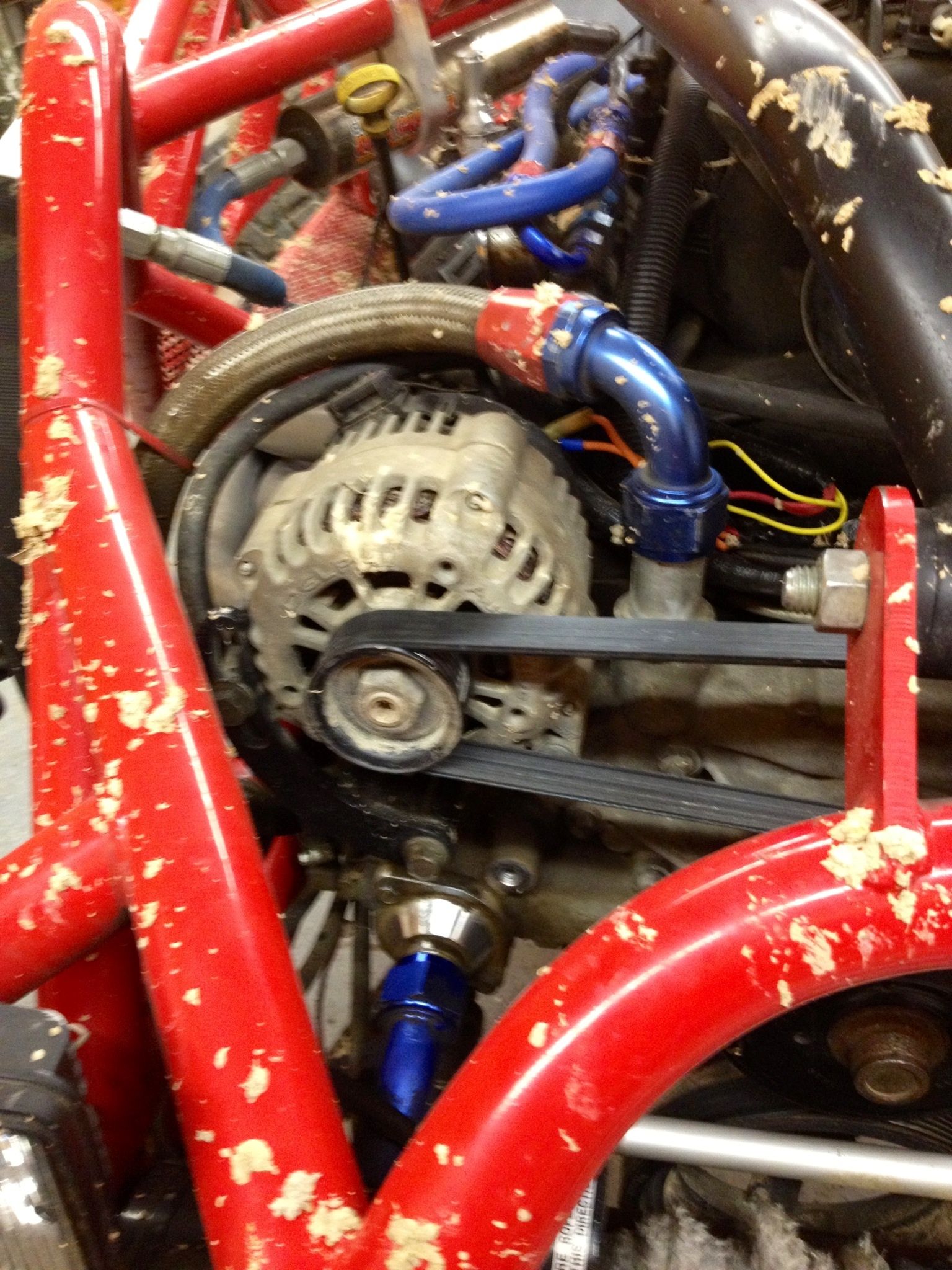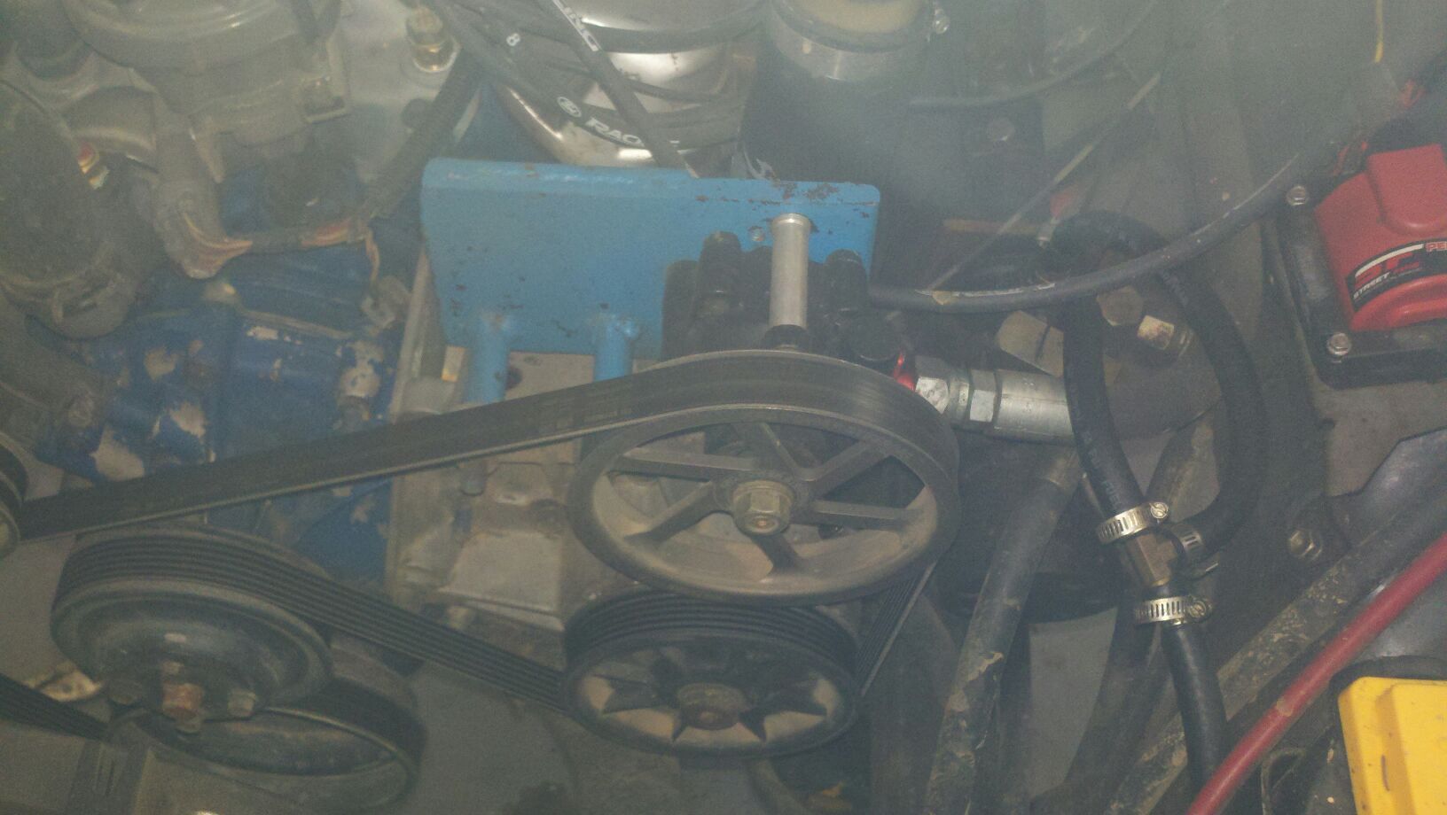 Did you have difficulty with finding the right belt length to run that system? I did it on my last rig but was running seperate v-belts to both pumps. One of the reasons I was looking at using the lower passenger location for the second pump was that it has a stock location for a rib belt with a tensioner. I thought it would be difficult to find a belt long enough to run in the configuration you have.