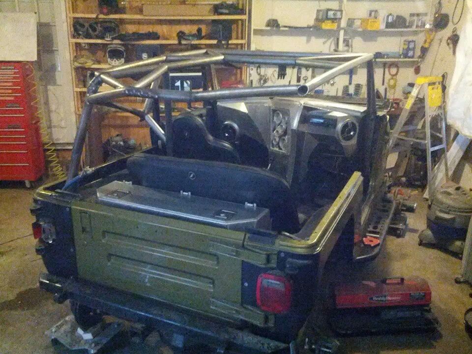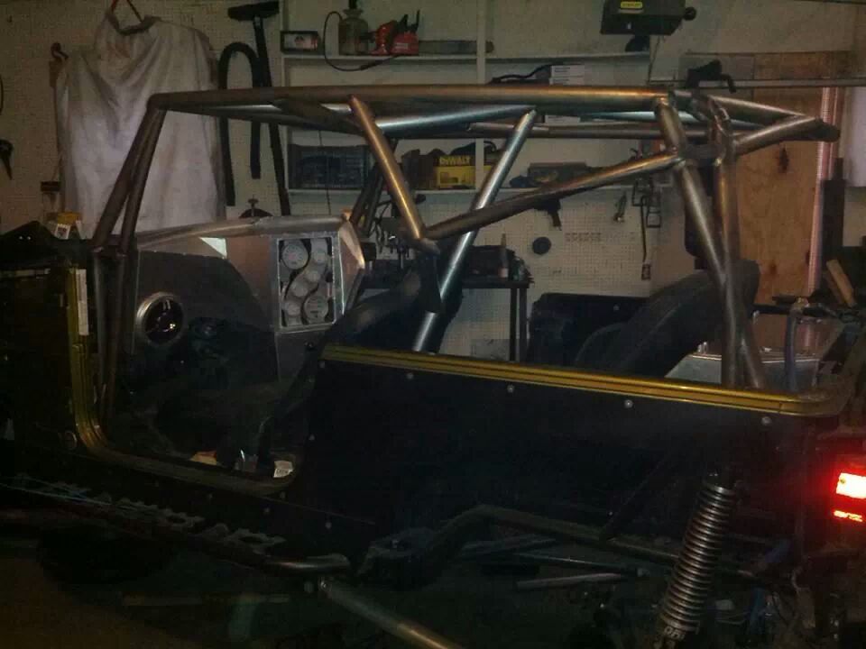 I couldn't narrow down which chapter of the suspension novel to explain, so I will just say PJ built it just about at good as it could be built under a jeep tub. The force of the compression is traveling straight into the cage. If it was mounted straight up the jeep would either sit higher or have less up travel. I tuned the shocks for the mounted position, so that is the performance advantage, along with the chassis reliability that PJ formed.