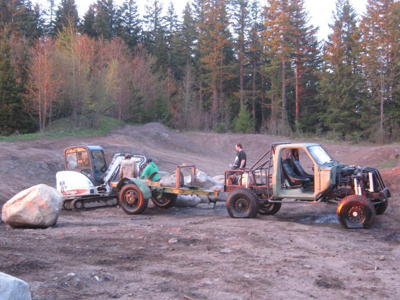 Skinny Pedal said that he may be able to get his tractor up there with a couple of guys on Saturday to work on the hill climb. Their task would be gathering all the small rocks and boulders along side and on this trail, and moving them up to one section of the trail to make a slippery, rocky section in one of the steeper parts. James, Dave and I spent a couple of hours doing this on Saturday but that was about as far as we could go without having a way to get the rocks up the trail, without having a heart attack! The bucket on the front of a tractor is going to be perfect to fill with fist sized, foot ball sized and basket ball sized rocks and just dump them on the trail. A couple of stragetically placed logs will keep most of the rocks in place. Every once in a while we'll probably need to reload:awesomework: