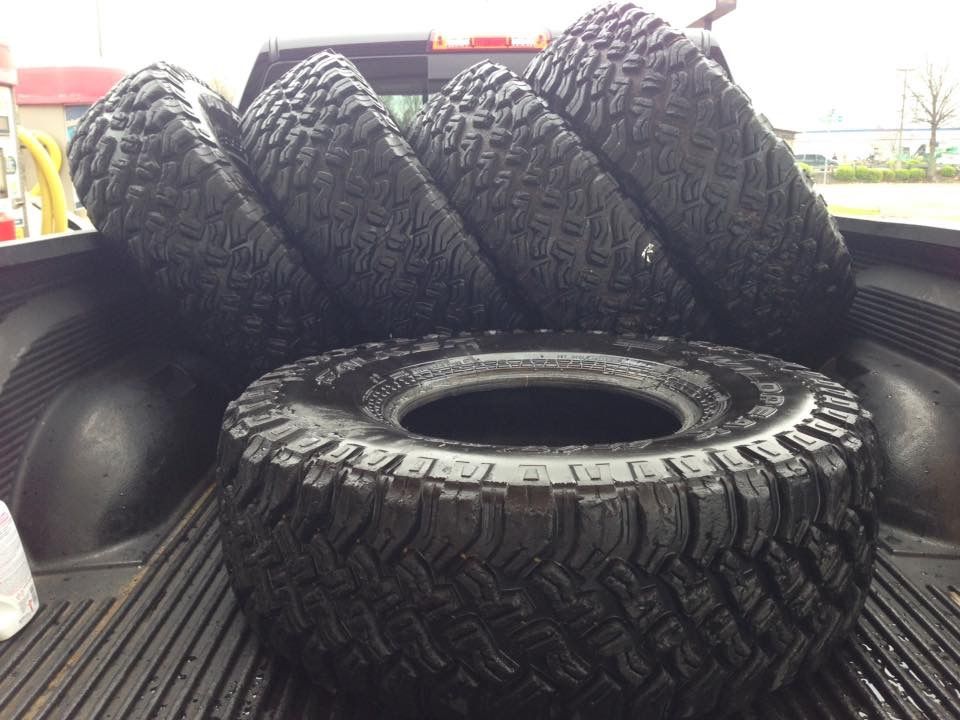 (4) 38x13.5R17 Falken wildpeak m/t stickies with (1) 38x13.5R17 Falken wildpeak m/t spare that is not a race tire. These were used for 1 race so they still have plenty of life in them for a crawler. Do have cuts from the rocks but all are still good and hold air. Will deliver within 100 miles of Memphis TN or ship fastenal on buyers dime.