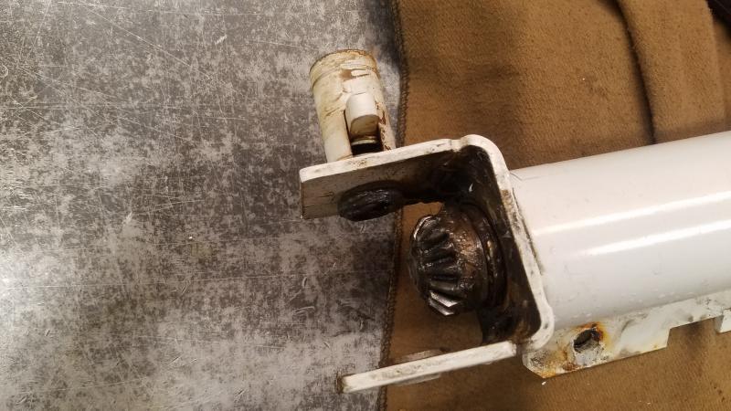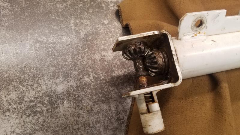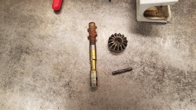 So to get the drive gear off there is a pin on the outer edge. Simply pound it out and slip the drive shaft out. The pins that the tool uses to turn it only lets it come out one way.