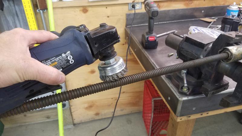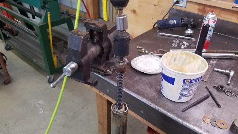 Since the threaded part of the jack had zero grease on it and was a little rusty I did a light wire wheel on it. I found running the threaded part all the way up and greasing the threads and running it down and back up and wiping the rusty grease of and then repeating got grease on the other side of the jack female threaded portion.