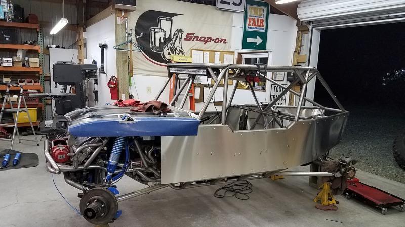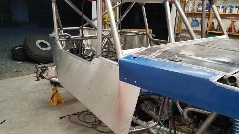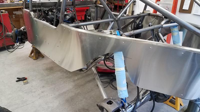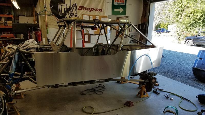 Time for skins. I started by getting many tabs welded to the chassis and then plain sheets bolted to it (measuring for holes ect)..